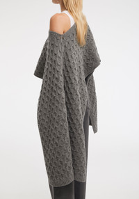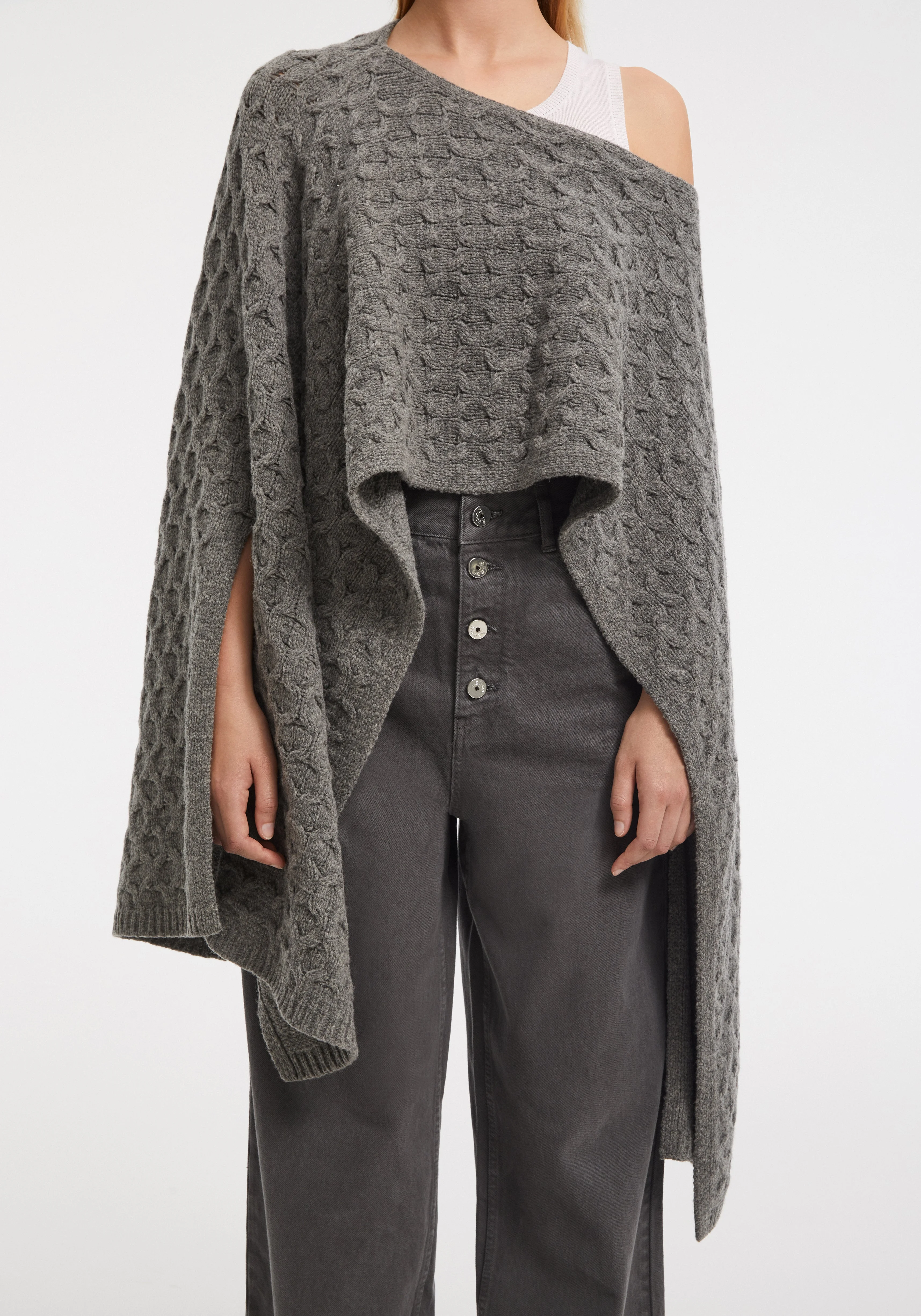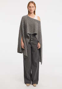 Cable-knit merino cape