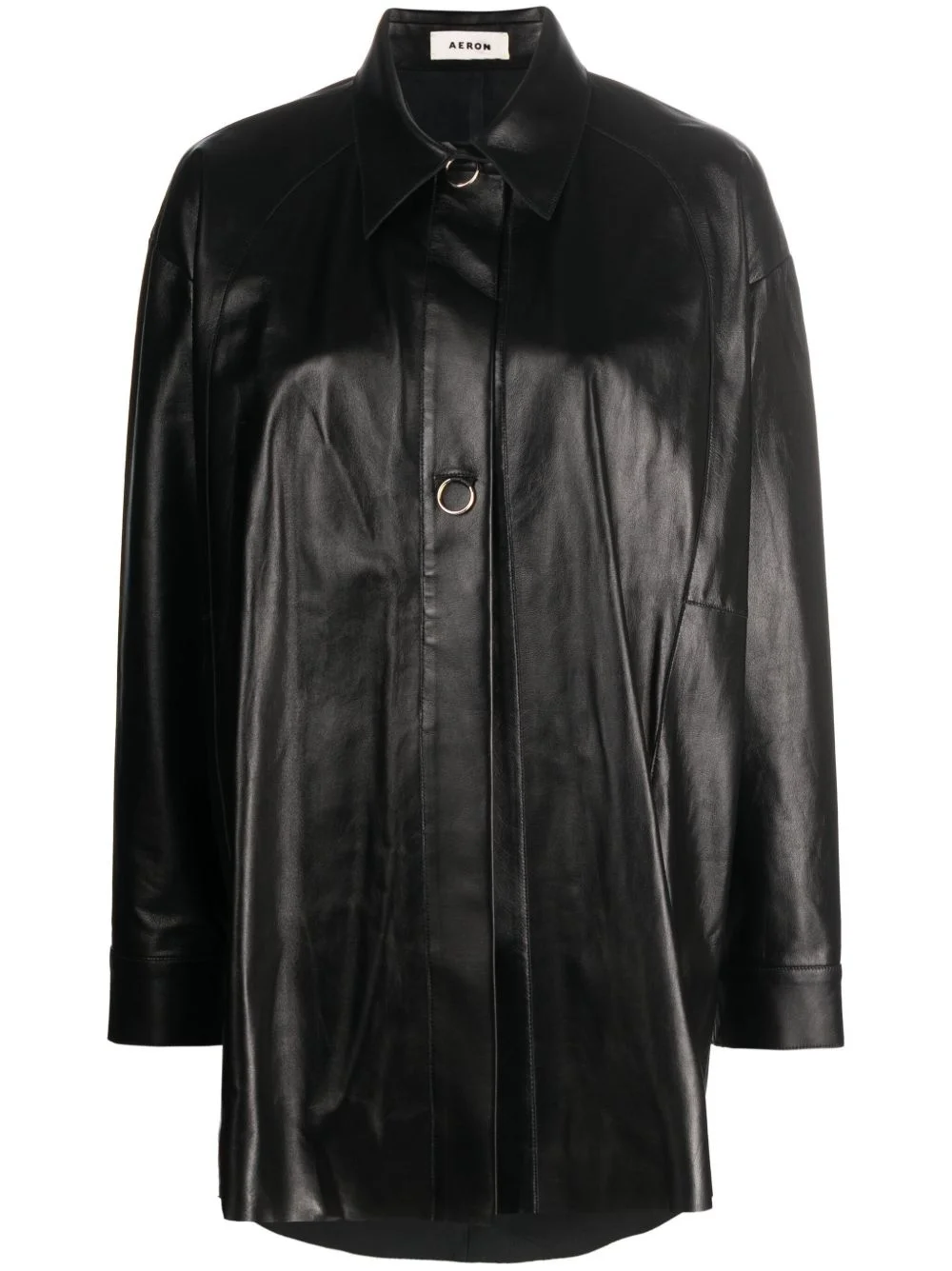 Feather leather shirt Highlights - Black - Lambskin - Classic collar - Ring fastening - Long sleeves - Curved hem Imported Composition Lambskin 100% SIZE & FIT Model measurements Height 5 ft 11 in(1.8 m) Bust/Chest 33.07 in(84 cm) Hips 37.4 in(95 cm) Waist 25.19 in(64 cm) FittingInformation Designed to be unstructured, offering a loose fit throughout Soft leather has a supple and smooth construction offering some flexibility This piece fits true to size – take your usual size