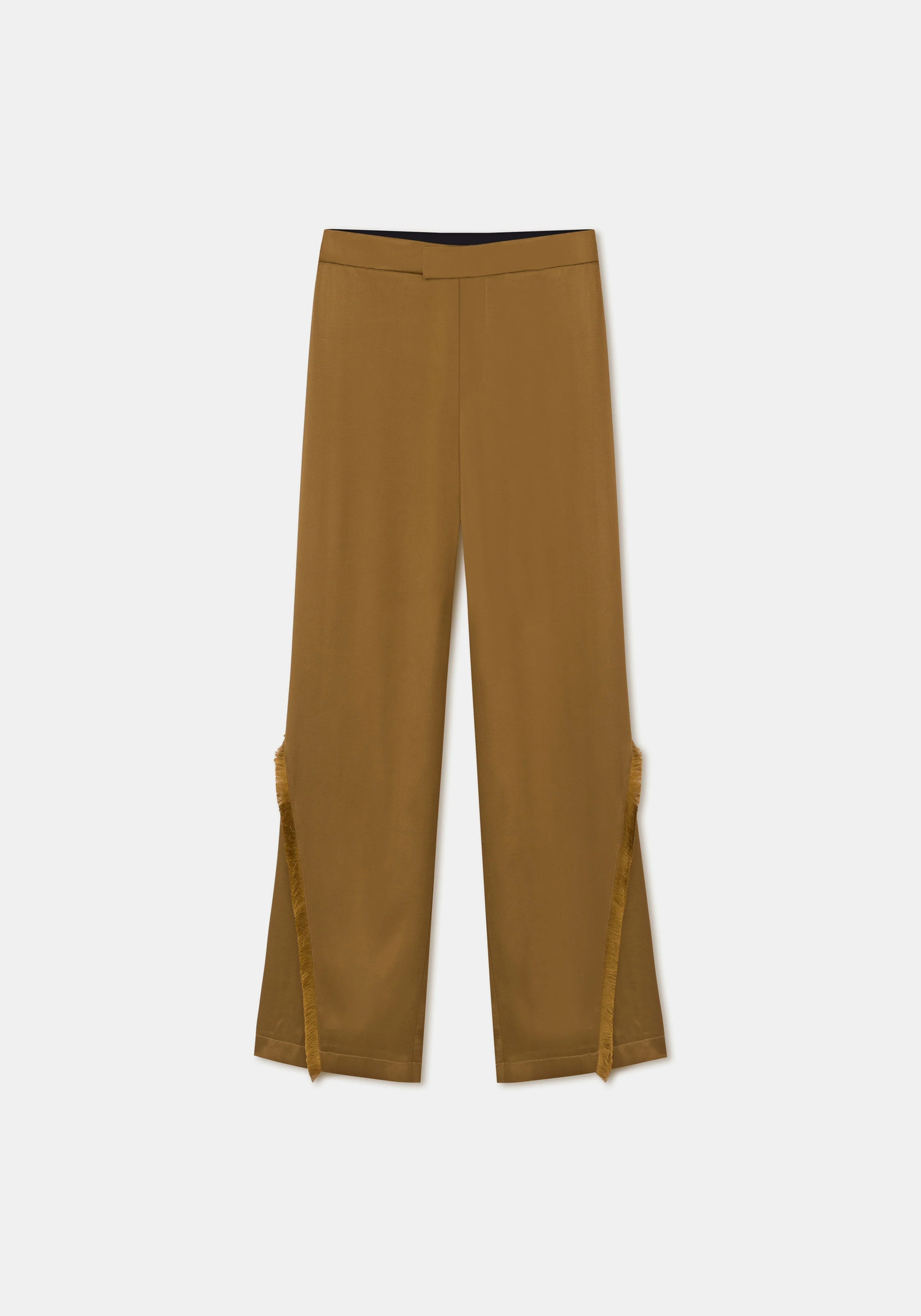 Satin wide-leg pants with frayed seam