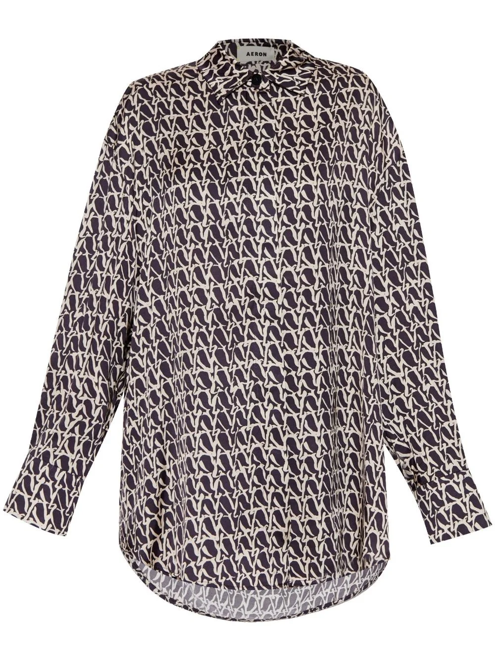 Flint printed shirt Highlights - Oreo black/cream - Monogram print - Spread collar - Concealed front button fastening - Long sleeves - Buttoned cuffs - Curved hem Imported Composition Viscose 52%, Rayon 48%