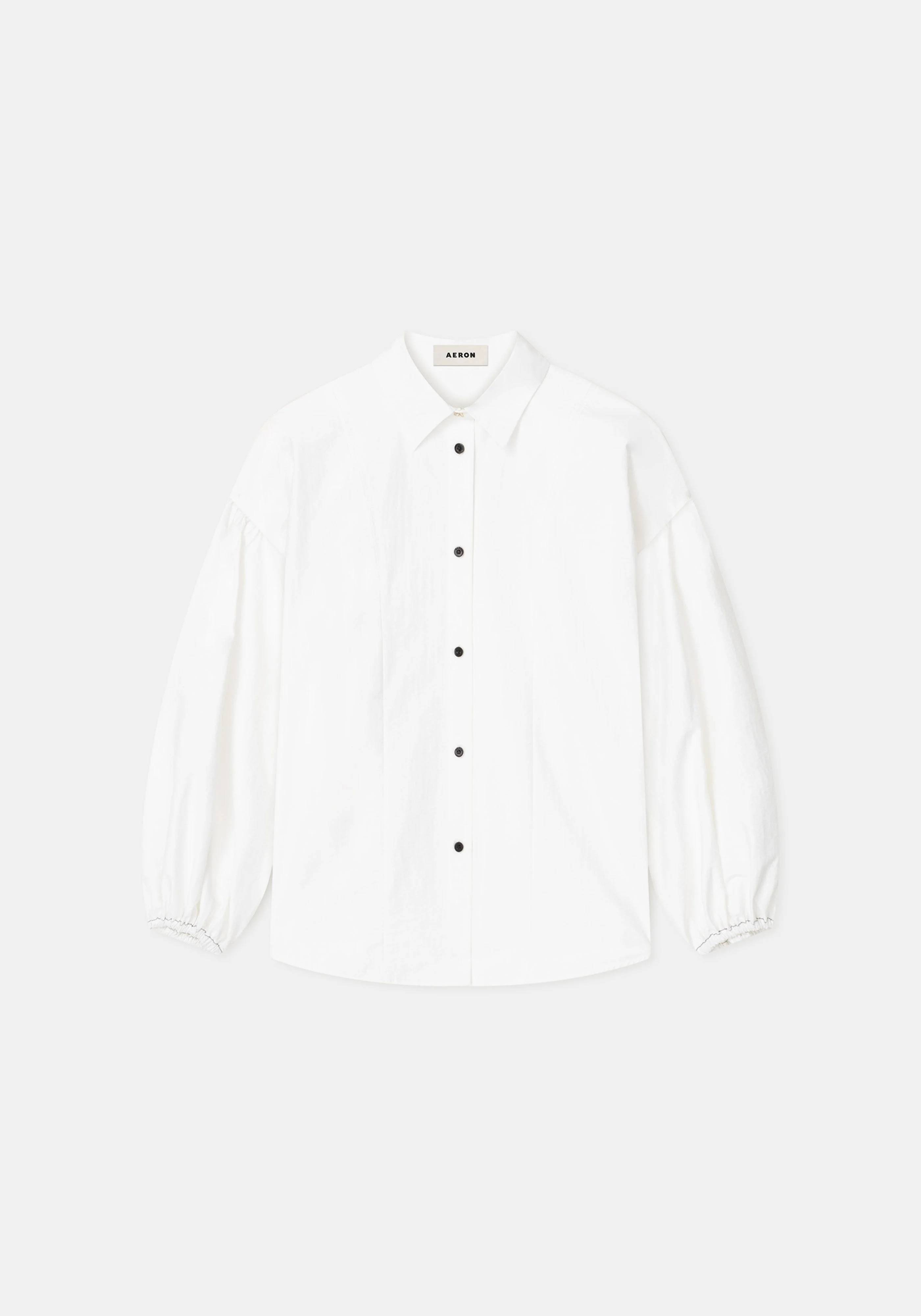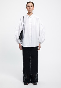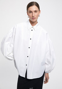 Our HALEY poplin shirt is made of a crispy cotton blend. This piece has voluminous balloon sleeves and an oversized silhouette. Size and Fit Designed for a loose fit, in case you do not prefer an oversized look take one size smaller than usual. The model is 180 cm and wears a size 36. Fabric and Care 89% Cotton 11% Polyamide Do not wash, Do not bleach, Do not tumble dry, Iron low temperature, Suitable for dry cleaning, Suitable for professional wet cleaning