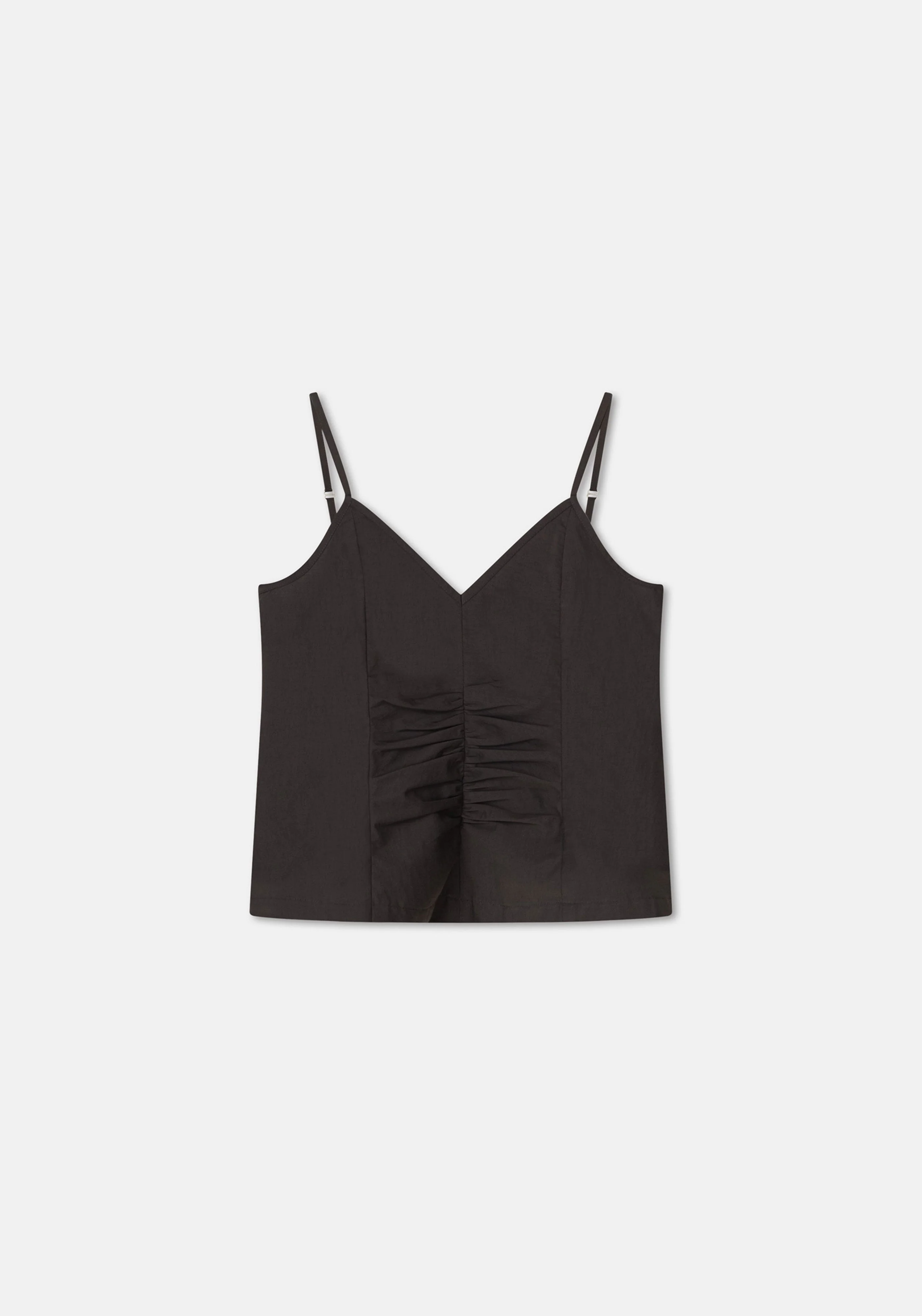 Our HENNY poplin cami top is tailored of a crispy cotton blend. This piece has a regular fit, ruched details and adjustable straps. Size and Fit Fits true to size, take your normal size. The model is 180 cm and wears a size 36. Fabric and Care 89% Cotton 11% Poliamide Do not wash, Do not bleach, Do not tumble dry, Iron low temperature, Suitable for dry cleaning, Suitable for professional wet cleaning
