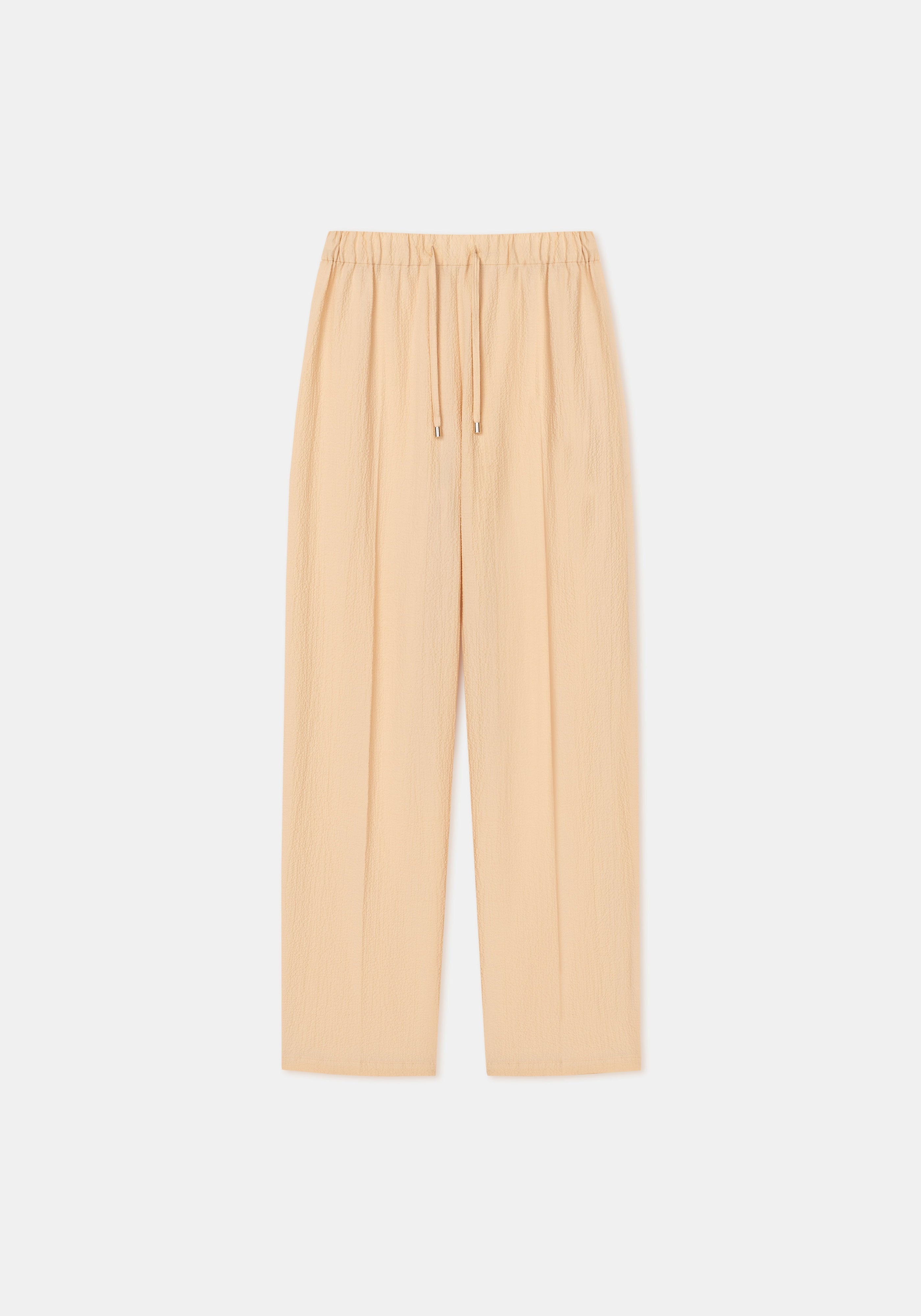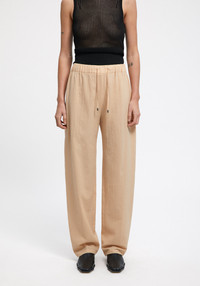 Our JOSEPHINE pants are crafted from lightly textured seersucker. This piece has a casual style with adjustable drawstrings and cut to a classic straight silhouette. Size and Fit Fits true to size, take your normal size. The model is 180 cm and wears a size 36. Fabric and Care 98% Cotton 2% Elastane Hand wash at 30°C, Do not bleach, Do not tumble dry , Iron low temperature, Do not wring, Dry flat, Suitable for dry cleaning, Suitable for professional wet cleaning