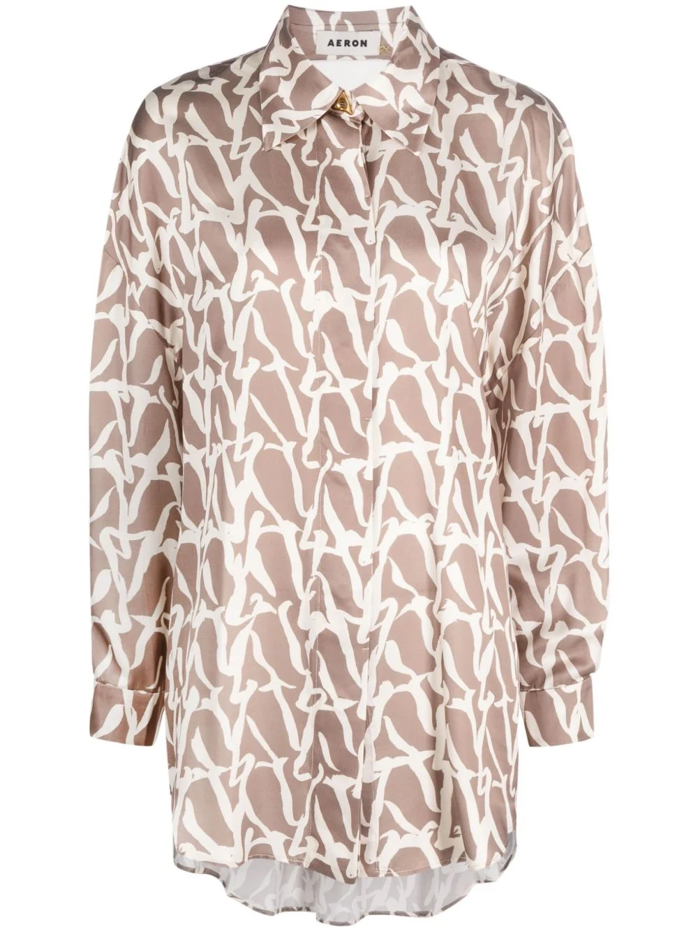Julia A-monogram shirt Highlights - Light brown/white - Silk blend - Satin finish - Monogram pattern - Classic collar - Concealed front button fastening - Long sleeves - Buttoned-cuff sleeves - Curved hem Imported Composition FSC Viscose 70%, Silk 30% SIZE & FIT Model measurements Height 5 ft 11 in(1.8 m) Bust/Chest 33.07 in(84 cm) Hips 37.4 in(95 cm) Waist 25.19 in(64 cm) FittingInformation Designed to be unstructured, offering a loose fit throughout Made from a midweight non-stretch fabric This piece fits true to size – take your usual size