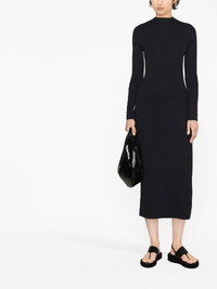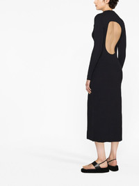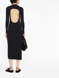 Lara open-back knitted dress Spun from a sustainable blend of EcoVero™, a type of viscose crafted from recycled materials, Aeron's Lara knitted dress is woven into a finely ribbed texture and cut for a mid-length elevated by a cut-out accent at the rear. Highlights - Black - Ecovero™ blend - Knitted construction - Long sleeves - Open back - Mid-length - High neck - Fine ribbed Made in Italy Composition Viscose 100% SIZE & FIT Model measurements Height 5 ft 10 in(1.78 m) Bust/Chest 30.7 in(78 cm) Hips 34.64 in(88 cm) Waist 23.22 in(59 cm) FittingInformation This piece fits true to size. We recommend you get your regular size Cut for a slim fit Made with a mid-weight fabric Washing instructions Hand Wash