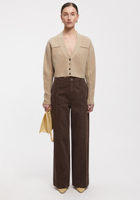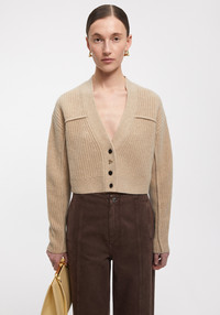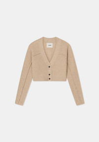 Our LEAH V-neck cardigan is made of pure extrafine merino wool. This super soft and warm piece has a cropped silhouette that flatters the waist and layers easily over high-rise bottoms. Designed with a deep V-neckline and ribbed texture, it features refined detailing such as tonal chest seams and a clean button-front closure with our signature A-button. Size and Fit Fits true to size, take your normal size. The model is 180 cm and wears a size S. Fabric and Care 100% Extrafine Merino Wool Hand wash cold or at 30°C, Do not bleach, Dry flat, Iron at a low heat, Dry cleanable