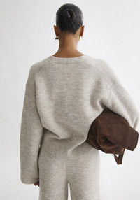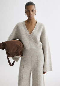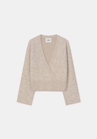 Our LEON wrapped sweater is crafted from a sumptuous wool blend, balancing softness and structure in an understated, elevated silhouette. Its refined wrap front creates a gentle V-neckline that frames the collarbone, while the wide ribbed waistband offers subtle definition and contrast. Fabric and Care 75% wool, 25% polyamide Do not wash, Do not bleach, Do not tumble dry, Do not iron, Dry clean