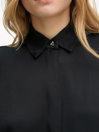 long sleeve shirt Highlights - Black - Long sleeves - Front button fastening - Straight hem Imported Composition Viscose 52%, Rayon 48% Washing instructions Read Manufacturer Guidelines