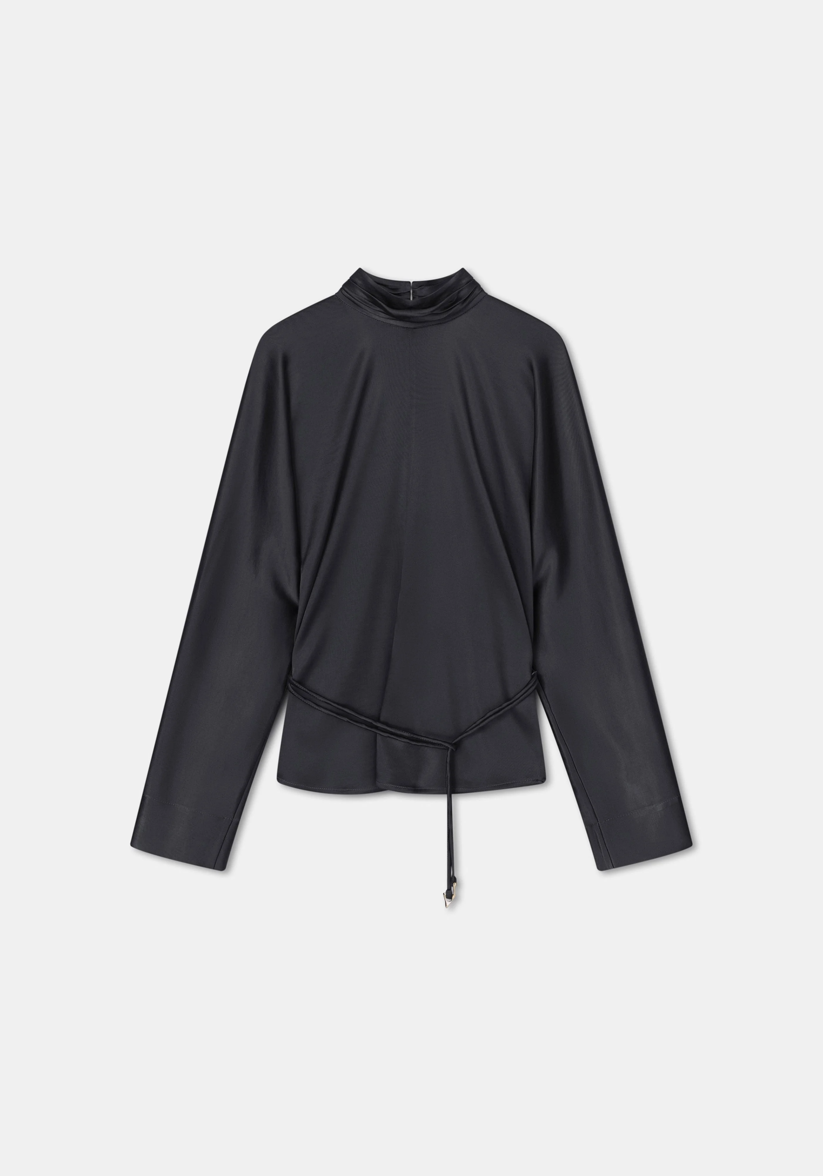 Our MAR satin turtleneck is crafted from a sustainable FSC-certified viscose blend, offering a luxurious sheen with a soft, fluid drape. This piece features a high neckline, subtly gathered cuffs, and a tonal drawstring belt to cinch the waist, creating elegant shape and movement. Size and Fit Fits true to size, take your normal size. The model is 180 cm and wears a size 36. Fabric and Care 44% FSC Viscose 52% Rayon 4% Spandex Hand wash at 30°C, Do not bleach, Do not tumble dry, Iron low temperature, Do not wring, Dry flat, Suitable for dry cleaning, Suitable for professional wet cleaning