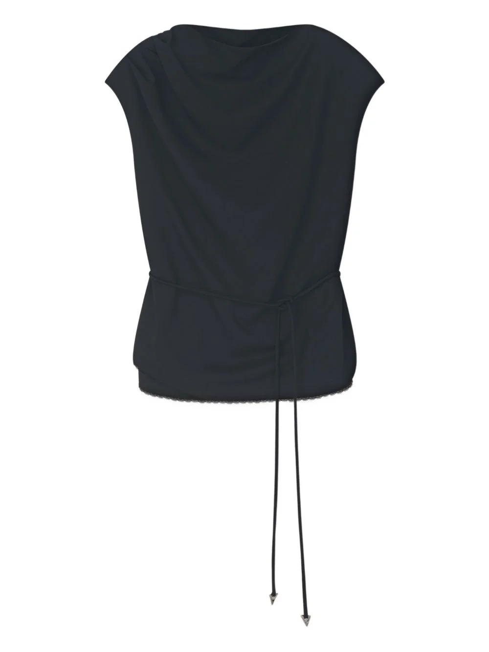 Moon draped tie-detail top Highlights - Black - Tie fastening - Draped neck - Cap sleeves - Trim detail - Exposed shoulders Imported Composition Lyocell 100% Washing instructions Read Manufacturer Guidelines