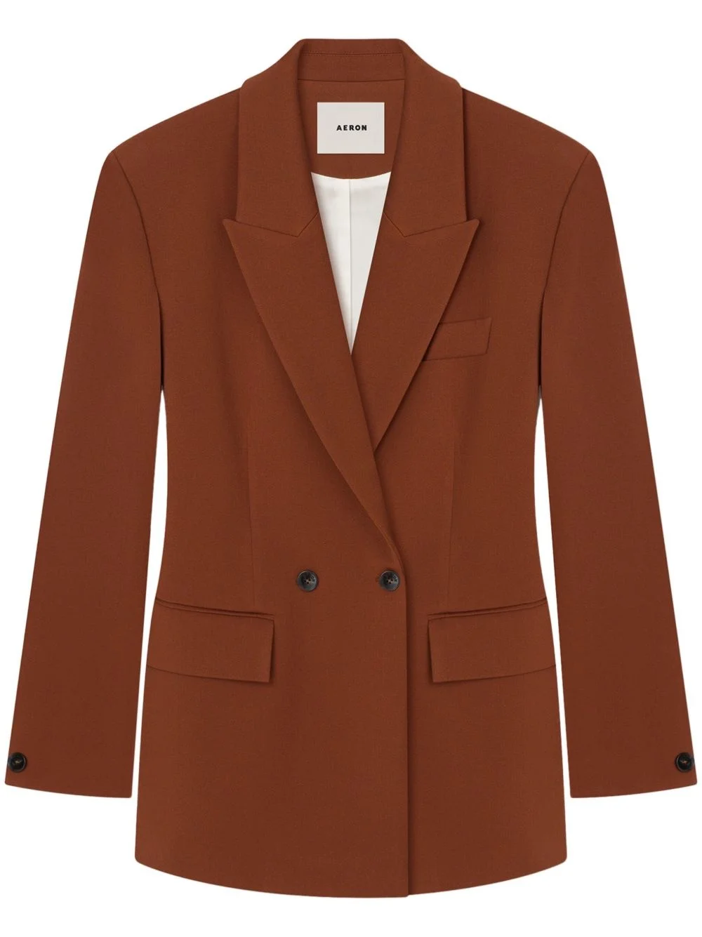 Motive blazer Highlights - Terracotta brown - Double-breasted button fastening - Peak lapels - Long sleeves - Buttoned cuffs - Jetted chest pocket - Two front flap pockets - Full lining - Straight hem Imported Composition Polyester 68%, Viscose 29%, Elastane 3%