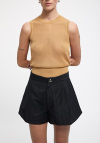Our MURIEL shorts are made of a crispy linen blend. This piece has a casual style with adjustable drawstrings featuring hanging A-motifs to give an elegant, standout feel. It is perfect for a casual everyday look or over beachwear. Size and Fit Fits true to size, take your normal size. The model is 180 cm and wears a size 36. Fabric and Care 86% Linen 14% Polyamide Do not wash, Do not bleach, Do not tumble dry, Do not iron, Suitable for dry cleaning, Suitable for professional wet cleaning