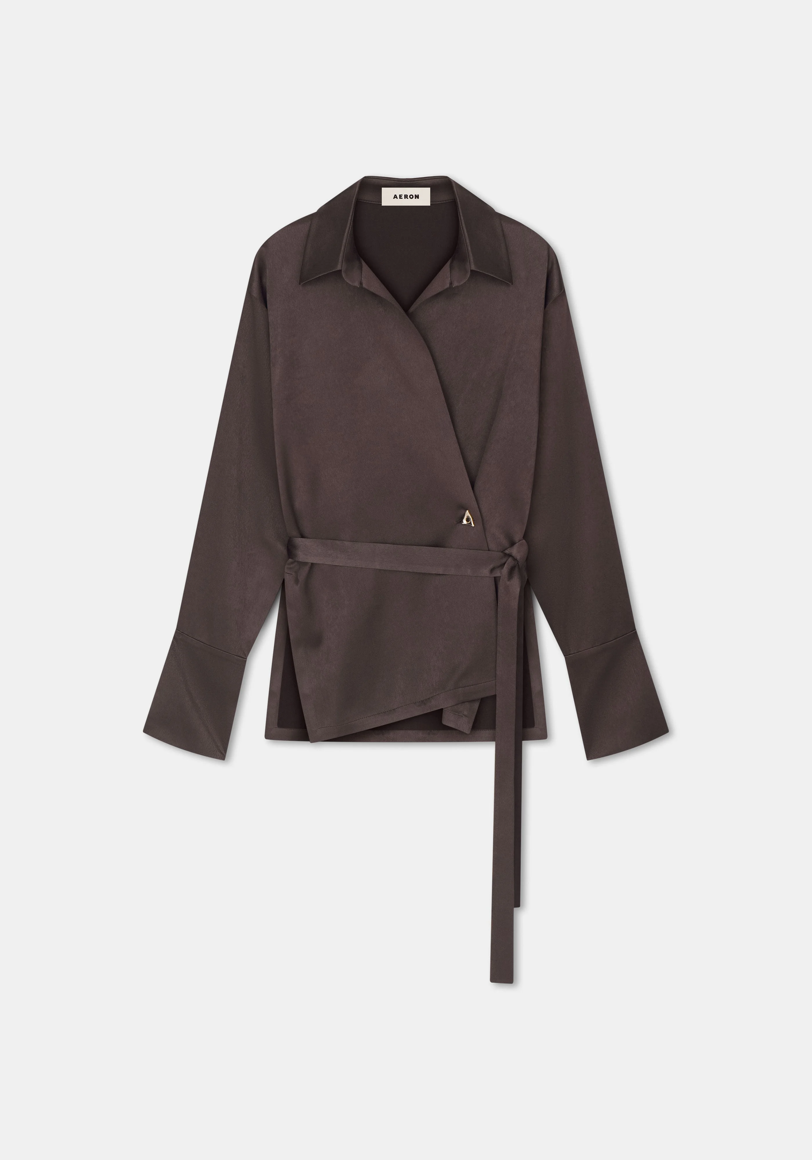 Our NEEL satin wrap shirt is a fluid piece features a soft collar, extended cuffs, and a wrap front that ties at the waist, offering a flattering silhouette with subtle structure. Detailed with our signature A-motif button, it combines modern elegance and smart design. Size and Fit Fits true to size, take your normal size. Fabric and Care 62% acetate, 38% polyester Hand wash cold or at 30°C, Do not bleach, Do not tumble dry, Iron at medium temperature, Dry clean, Do not wring