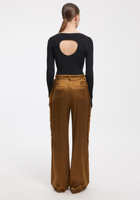 Our NILA ribbed long-sleeved top is made of a technical stretch blend, designed to offer structure and comfort. This piece has an elegant open-back detail that adds a bold, modern accent to its clean, form-fitting design. Size and Fit Fits true to size, take your normal size. The model is 180 cm and wears a size S. Fabric and Care 75% rayon 22% nylon 3% spandex Hand wash at 30°C, Do not bleach, Do not tumble dry, Iron low temperature, Do not wring, Dry flat, Suitable for dry cleaning, Suitable for professional wet cleaning