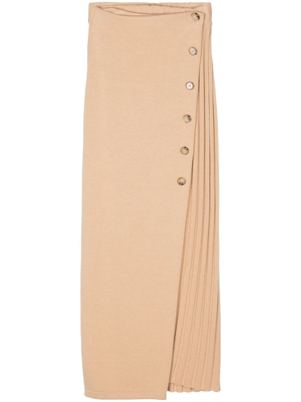 Nougat knitted skirt light beige merino wool blend knitted construction ribbed panelling wrap design ankle-length straight hem off-centre front button fastening Imported Composition Merino 55%, Cotton 45%