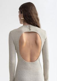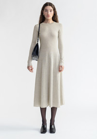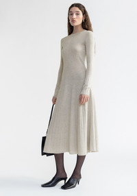 Our PAVLOVA midi dress is made with a slinky, metallized yarn that has a shiny look. This piece has a feminine silhouette that falls effortlessly on the body. It is knitted of alternating ribbed structures and features an open back, perfect for the party season. Size and Fit Fits true to size, take your normal size. The model is 180 cm and wears a size S. Fabric and Care 70% Viscose 15% Polyester 15% Metallized fiber Do not wash , Do not bleach, Do not tumble dry, Do not iron, Dry flat, Suitable for dry cleaning