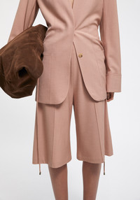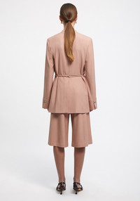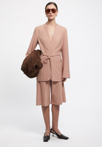 Our PEN shorts are tailored of a sustainable Ecovero Viscose blend. This is a classic summer suiting piece, cut to a knee-length silhouette and accentuated with sharp crease lines. Wear with the matching SUN blazer for a contemporary look. Size and Fit Fits true to size, take your normal size. The model is 180 cm and wears a size 36. Fabric and Care 83% Ecovero Viscose 14% Polyester 3% Elastane Do not wash, Do not bleach, Do not tumble dry, Iron medium temperature, Suitable for dry cleaning, Suitable for professional wet cleaning