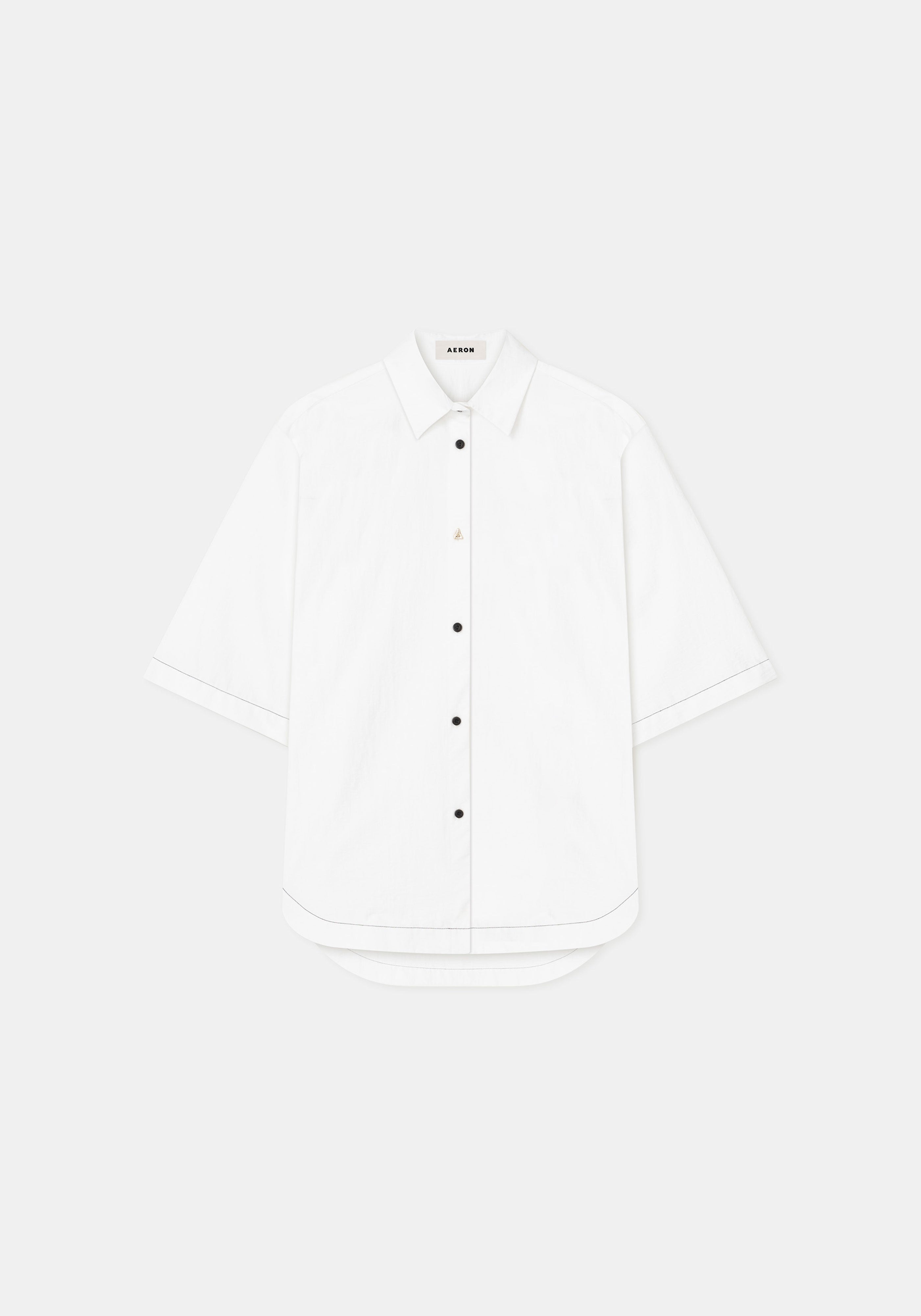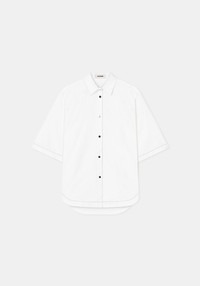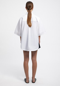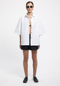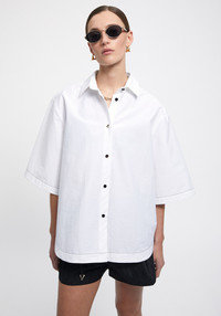 Our AVONLEA short-sleeved poplin shirt is made of a crispy cotton blend. This piece has an oversized silhouette and wide sleeves, featuring contrast stitching along the edges. Size and Fit Designed for a loose fit, in case you do not prefer an oversized look take one size smaller than usual. The model is 180 cm and wears a size 36. Fabric and Care 89% Cotton 11% Polyamide Do not wash, Do not bleach, Do not tumble dry, Iron low temperature, Suitable for dry cleaning, Suitable for professional wet cleaning