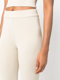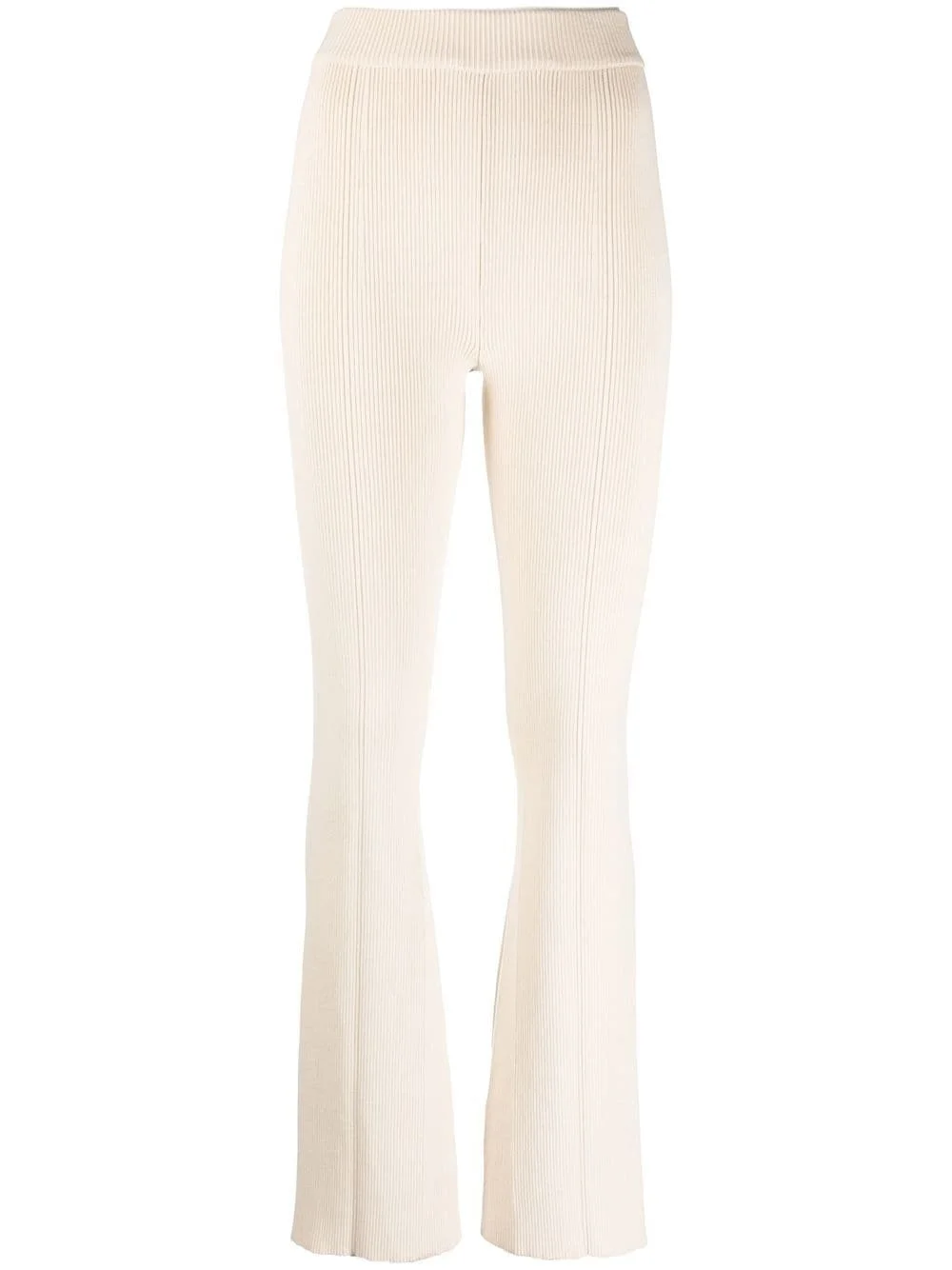 ribbed-knit flared trousers cream white ECOVERO™ flared high waist elasticated waistband Imported Composition Ecovero 70%, Polyester 30% SIZE & FIT Model measurements Height 5 ft 11 in(1.8 m) Bust/Chest 31.88 in(81 cm) Hips 35.03 in(89 cm) Waist 24.01 in(61 cm) FittingInformation This piece fits true to size. We recommend you get your regular size Designed to be fitted at the waist and through the thigh, loose from the knee Made with a heavyweight fabric Measurement FRONT RISE 10.51 in(26.7 cm) INSIDE LEG 30.51 in(77.5 cm) BACK RISE 11.49 in(29.2 cm) HIPS 24.01 in(61 cm) Hem Width 19.01 in(48.3 cm) WAIST 24.01 in(61 cm) Washing instructions Dry Clean Only