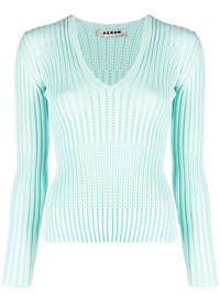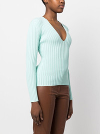 ribbed V-neck long-sleeve top