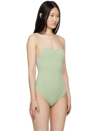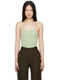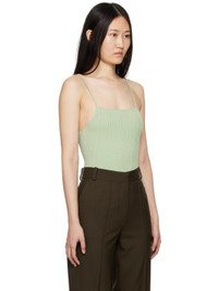 Rib knit FSC-certified Ecovero viscose-blend bodysuit. Seamless WholeGarment® technology. · Square neck · Fixed spaghetti straps · Low back Part of the ZERO collection. Supplier color: Sage 72% fsc viscose, 28% polyester. Made in Italy 231343F358002