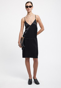 Our ABACO satin slip dress is made of a sustainable FSC-certified viscose and silk blend. This piece has a classic bias cut that falls effortlessly on the body and adjustable straps with hanging A-motifs. Size and Fit Fits true to size, take your normal size. The model is 180 cm and wears a size 36. Fabric and Care 30% Silk 70% FSC Viscose Hand wash at 30°C, Do not bleach, Do not tumble dry, Iron medium temperature, Do not wring, Dry in shade, Suitable for dry cleaning
