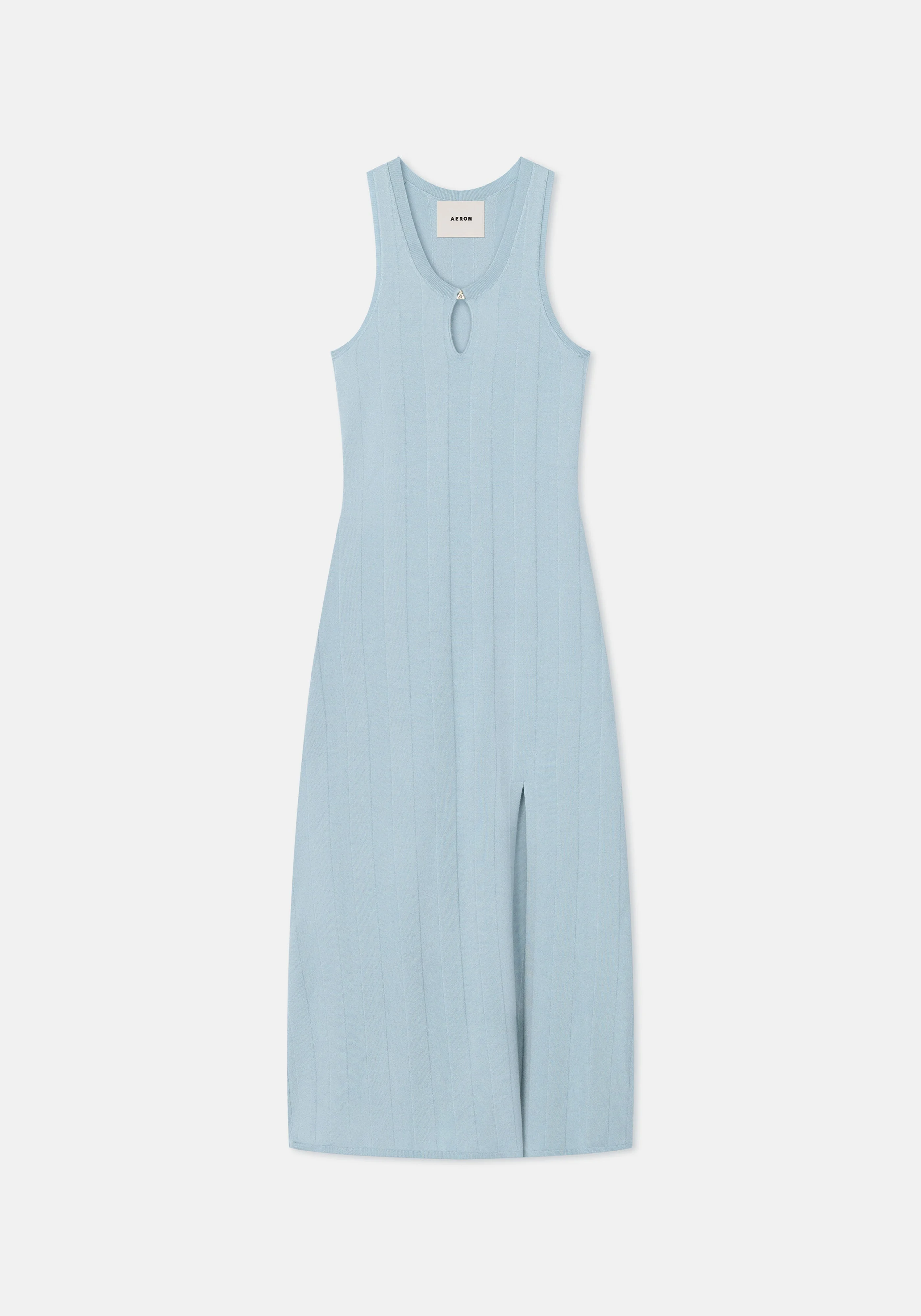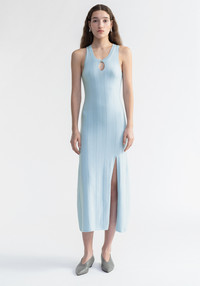 Our BELLE maxi dress is made of an extrafine merino wool blend. This piece has a fitted silhouette and a slit at the front, featuring a small A-button. The vertical knit and purl rows create a slightly textured effect on the body. Size and Fit Fits true to size, take your normal size. The model is 180 cm and wears a size S. Fabric and Care 75% Extrafine merino wool, 25% Lenzing lyocell Do not wash, Do not bleach, Do not tumble dry, Do not iron, Do not wring, Dry flat, Duitable for dry cleaning
