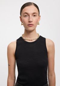 Our TOMI sleeveless top is made of pure extrafine merino wool. This delicate piece has a neat slim fit, a sheer body and a ribbed finishing. As a versatile wardrobe staple and a perfect layering piece, it can be worn under a blazer or completing a full look. Size and Fit Fits true to size, take your normal size. The model is 178 cm and wears a size S. Fabric and Care 100% Extrafine merino wool Hand wash at 30°C, Do not bleach, Do not tumble dry, Iron low temperature, Do not wring, Dry flat, Suitable for dry cleaning, Suitable for professional wet cleaning