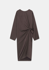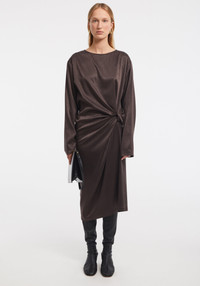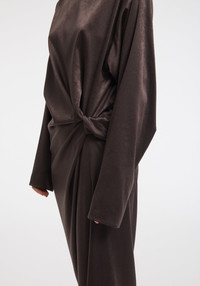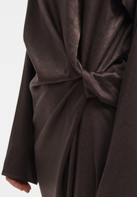 Our STEAM satin midi dress features a soft drape and a sculptural knot detail at the waist, creating natural gathers that flatter the body with ease. Ideal for both day and evening, it brings together comfort and sophistication. Size and Fit Fits true to size, take your normal size. Fabric and Care 62% acetate, 38% polyester Hand wash cold or at 30°C, Do not bleach, Do not tumble dry, Iron at medium temperature, Dry clean, Do not wring