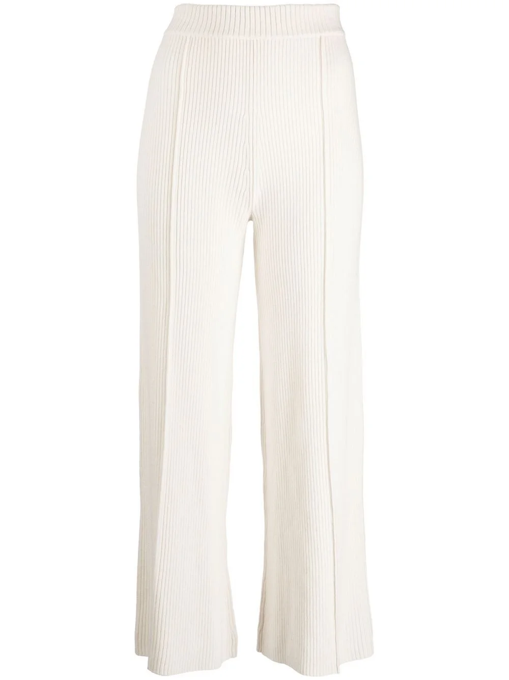 straight-leg merino-cashmere trousers beige merino-cashmere blend ribbed knit pintuck detailing straight leg high-waisted cropped elasticated waistband Imported Composition Merino 70%, Cashmere 30% SIZE & FIT Model measurements Height 5 ft 10 in(1.77 m) Bust/Chest 35.03 in(89 cm) Hips 35.03 in(89 cm) Waist 23.62 in(60 cm) FittingInformation This piece fits true to size. We recommend you get your regular size Designed to be fitted at the waist and hips, loose over the leg Made with a mid-weight fabric