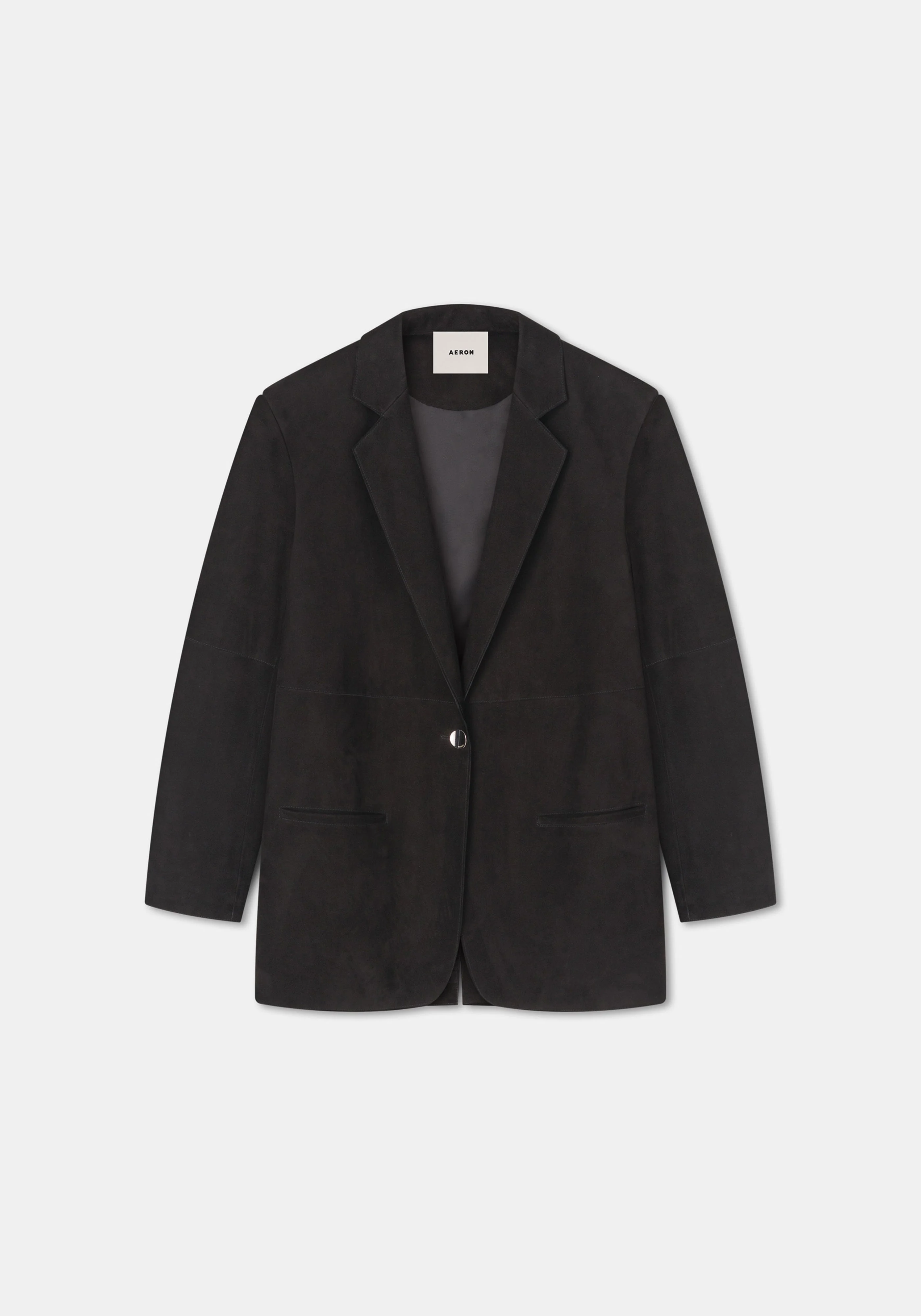 Our MERCEDES suede blazer is tailored of super soft lamb leather that comes from traceable sources. It features a sharp, timeless silhouette with classic notch lapels, a single front button closure, and a high slit at the back. Size and Fit Fits true to size, take your normal size. The model is 173 cm and wears a size 36. Fabric and Care 100% Lambskin leather Do not wash, Do not bleach, Do not tumble dry, Do not iron, Do not dry clean, Consult with leather specialist