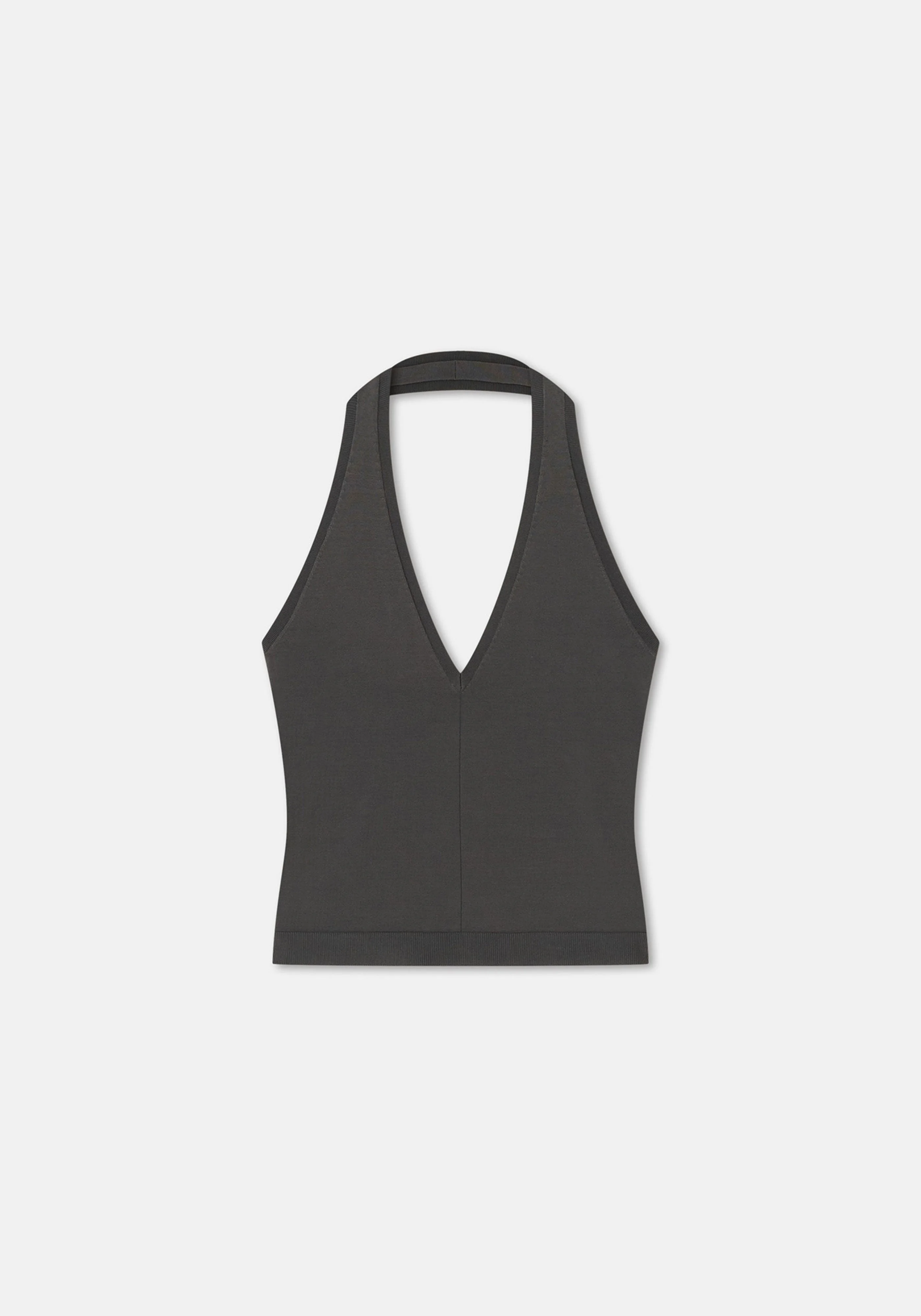 Our SUGARPLUM halterneck top is knitted of a slinky yarn with a rich, silky feel. This piece has a fitted and cropped silhouette featuring a V-neck and an open back. Size and Fit Fits true to size, take your normal size. The model is 180 cm and wears a size S. Fabric and Care 100% Rayon Hand wash at 30°C, Do not bleach, Do not tumble dry, Iron low temperature, Do not wring, Dry flat, Suitable for dry cleaning, Suitable for professional wet cleaning