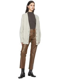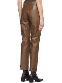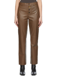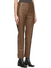Straight-leg lambskin trousers in taupe. · High-rise · Two-pocket styling · Button-fly featuring signature logo hardware · Fully lined · Gold-tone hardware Supplier color: Taupe Body: lambskin. Lining: 68% acetate, 32% polybutylene terephthalate. Made in Hungary 221343F087010