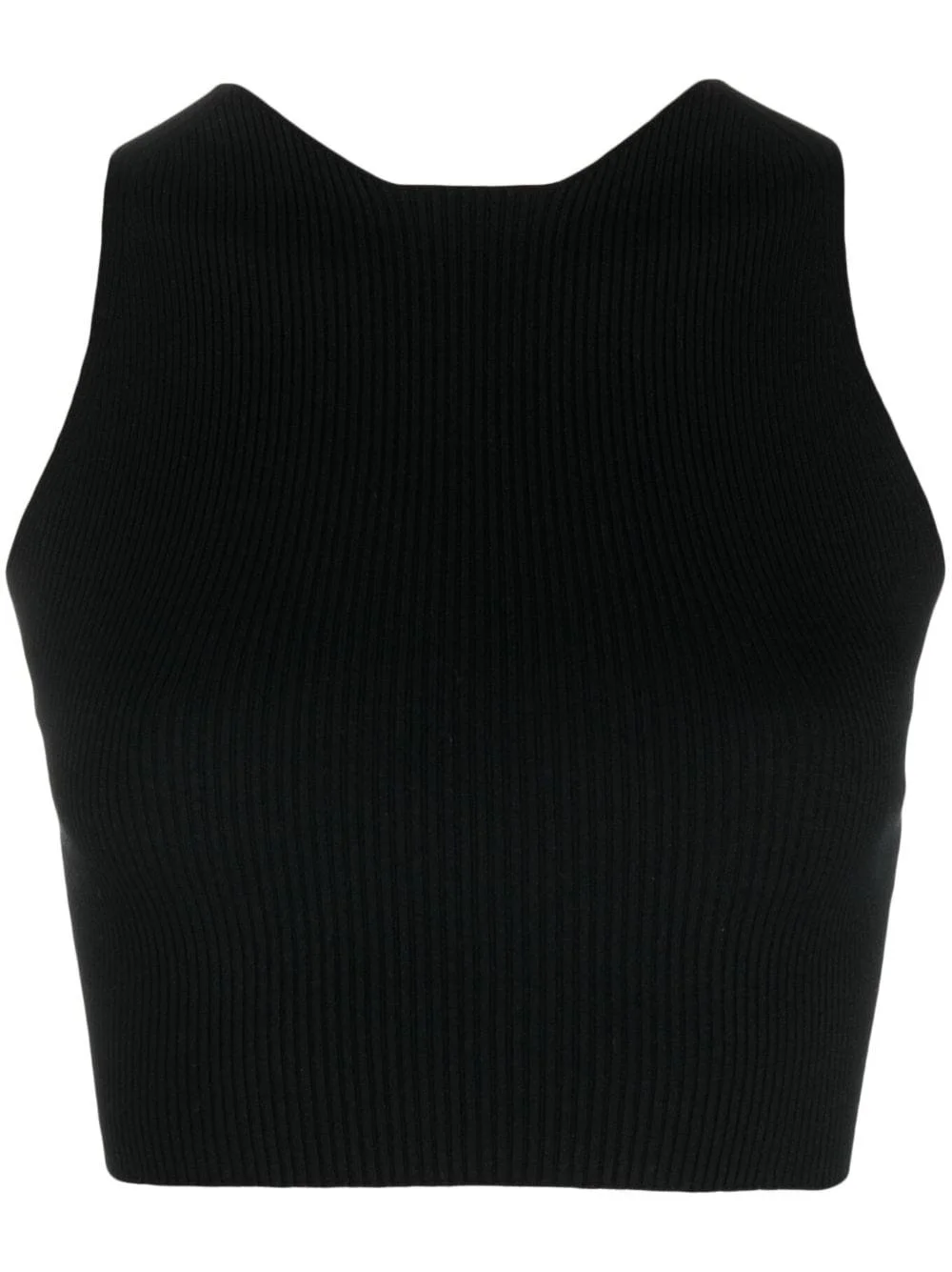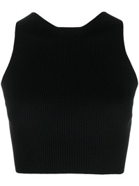 ribbed-knit crop top For a modern take on knitwear, this AERON top features a cropped, sleeveless design. Highlights - Black - Fine ribbed - Round neck - Sleeveless - Cropped Made in Italy Composition Viscose 72%, Polyester 28%