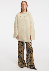 Our TUNDRA oversized sweater is knitted of a chunky chenille yarn. With its wide neckline and slouchy silhouette, it embodies laid-back sophistication while offering unmatched comfort. The asymmetric collar detail introduces a modern twist, making this piece an elevated essential that effortlessly balances coziness and contemporary design. Size and Fit Fits true to size, take your normal size. Fabric and Care 100% polyester Hand wash at 30°C, Do not bleach, Do not tumble dry, Do not iron, Suitable for professional wet cleaning, Do not wring