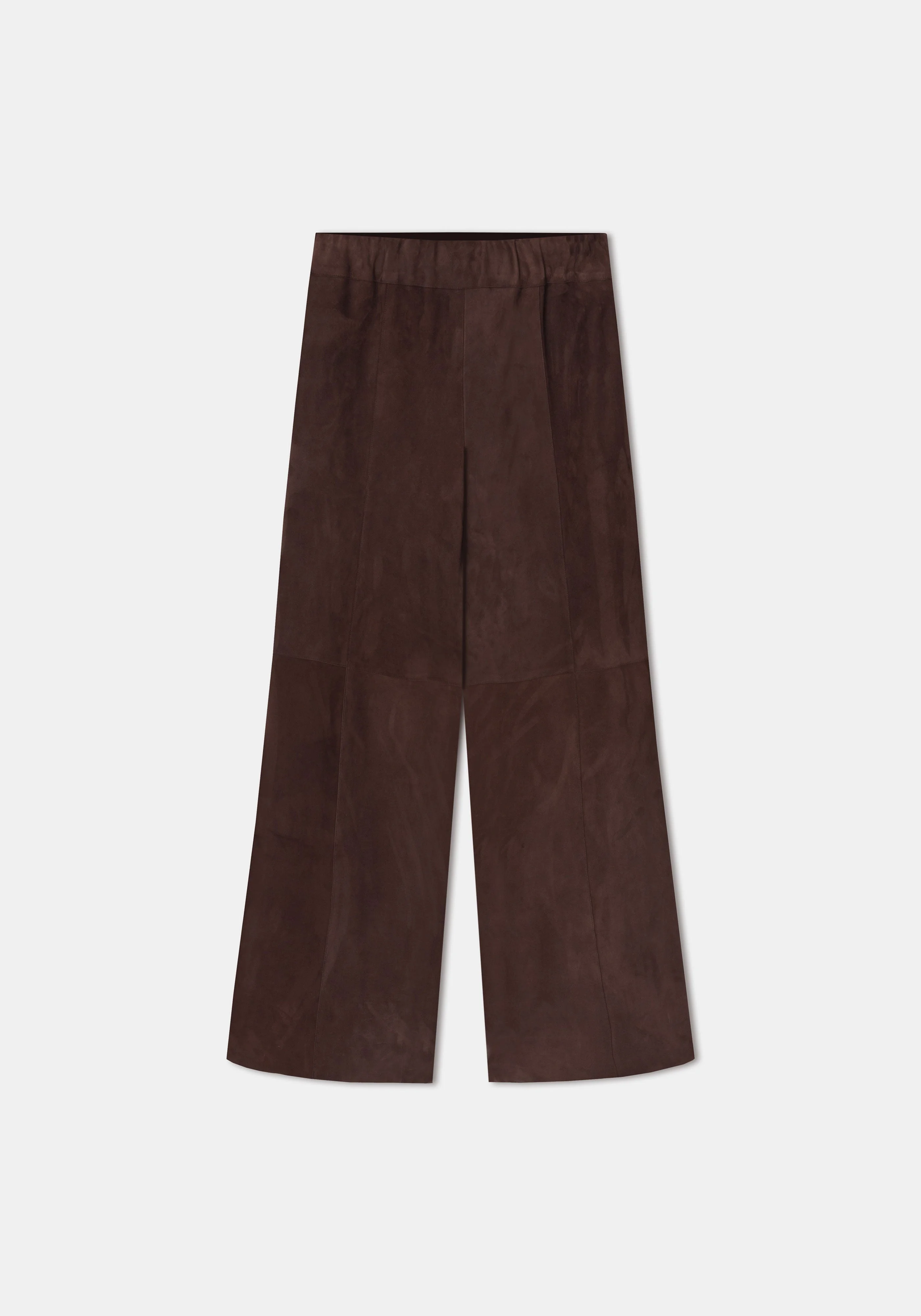 Our WHARF wide-leg suede pants are made of super soft lamb leather that comes from traceable sources. This piece has an elastic waistband and side slant pockets for leisure comfort. Size and Fit Fits true to size, take your normal size. The model is 173 cm and wears a size 36. Fabric and Care 100% Lambskin leather Do not wash, Do not bleach, Do not tumble dry, Do not iron, Do not dry clean, Consult with leather specialist