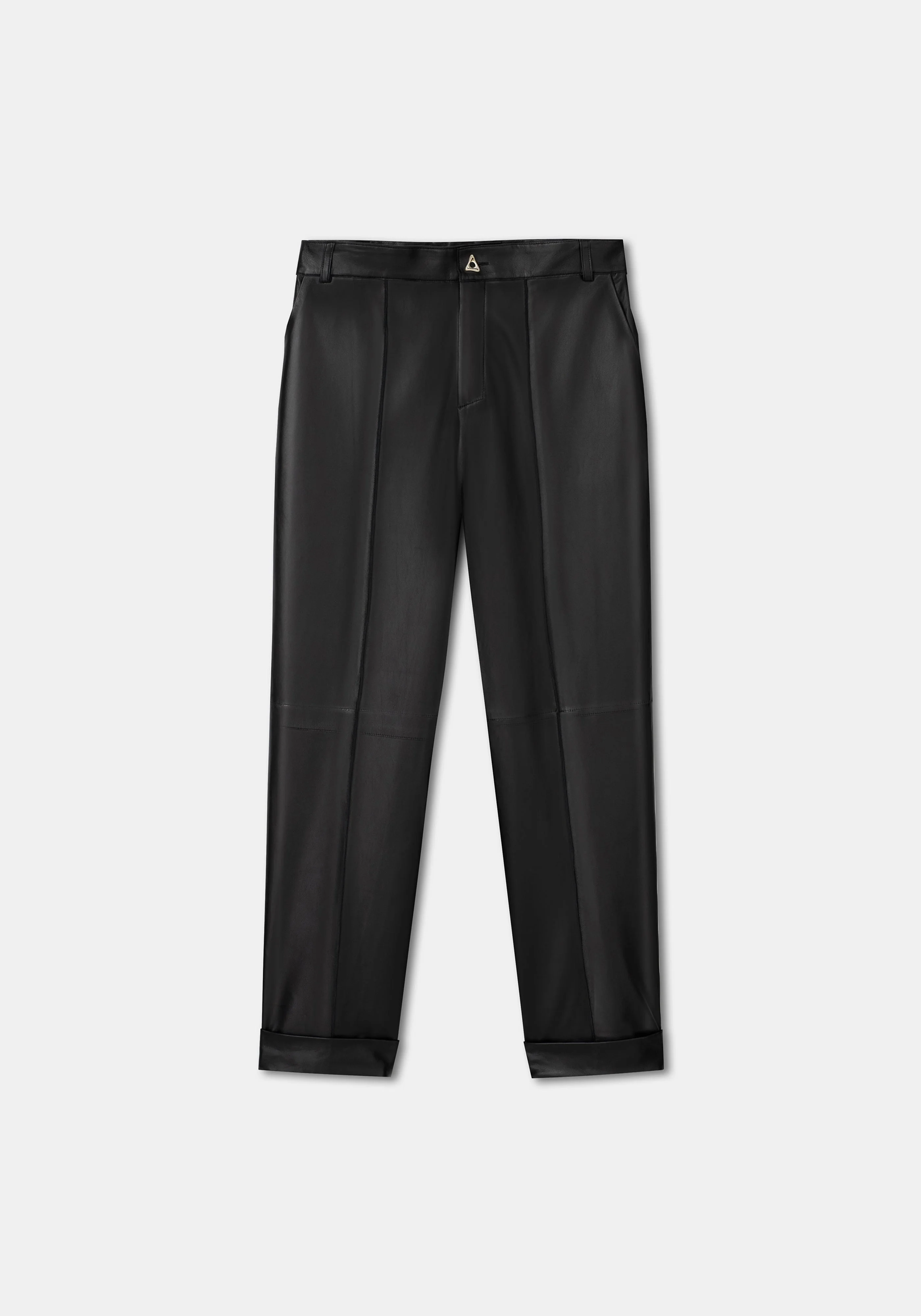 Our ZIMA straight-leg boyish cuffed pants are made of super soft chrome-free lamb leather that comes from traceable sources. It has hidden-button closure, and perfectly tailored straight legs. Size and Fit Fits true to size, take your normal size. The model is 178 cm and wears a size 36. Fabric and Care 100% Lambskin Leather Do not wash, Do not bleach, Do not tumble dry, Do not iron, Do not dryclean, Consult with leather specialist