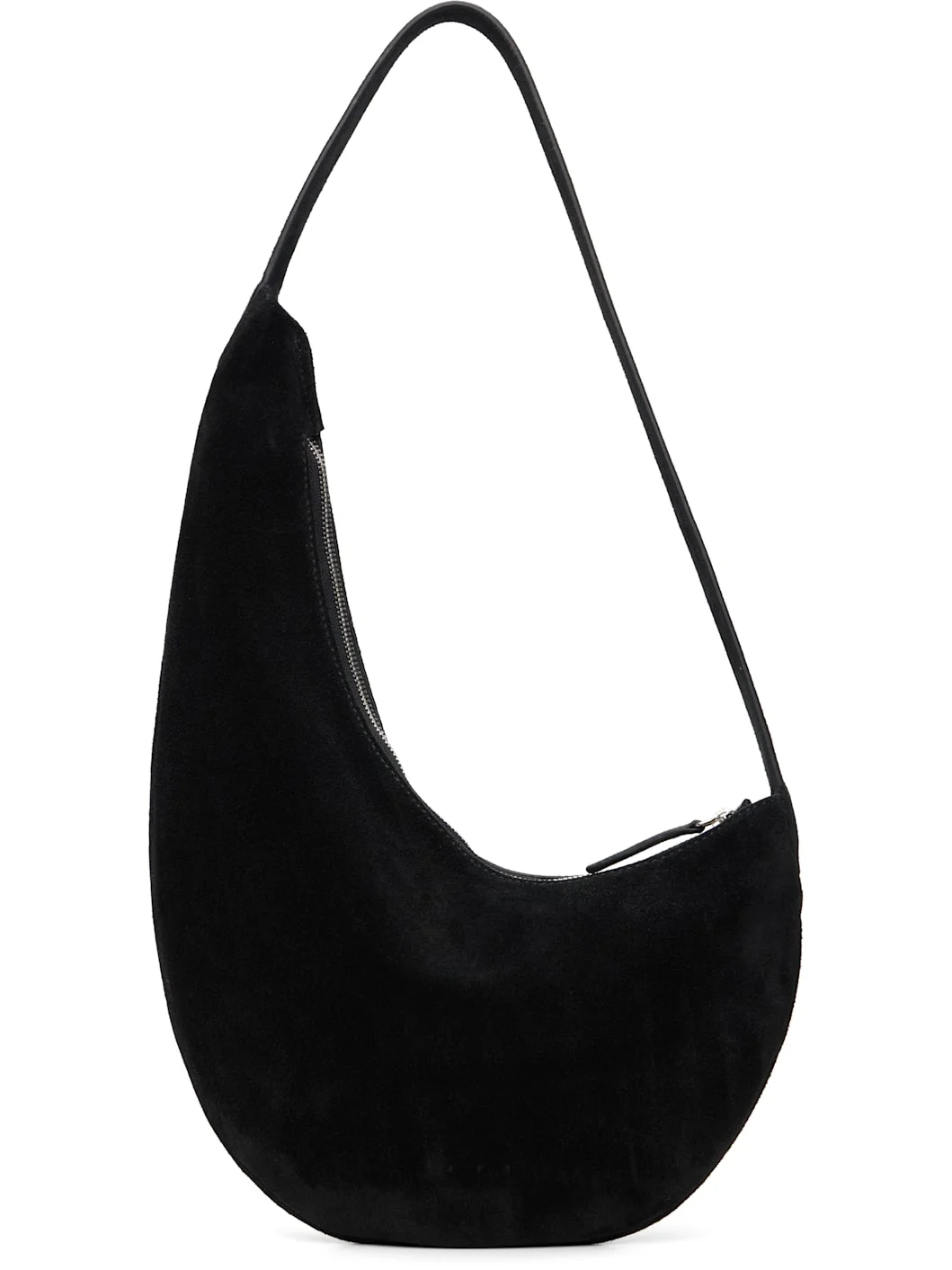 Calfskin suede shoulder bag. · Fixed shoulder strap · Logo embossed at face · Zip closure · Patch pocket at interior · Grosgrain lining · H7" x W10.5" x D1.25" Supplier color: Suede black Body: 100% calfskin. Lining: 100% polyester. Made in Spain 261239F048039