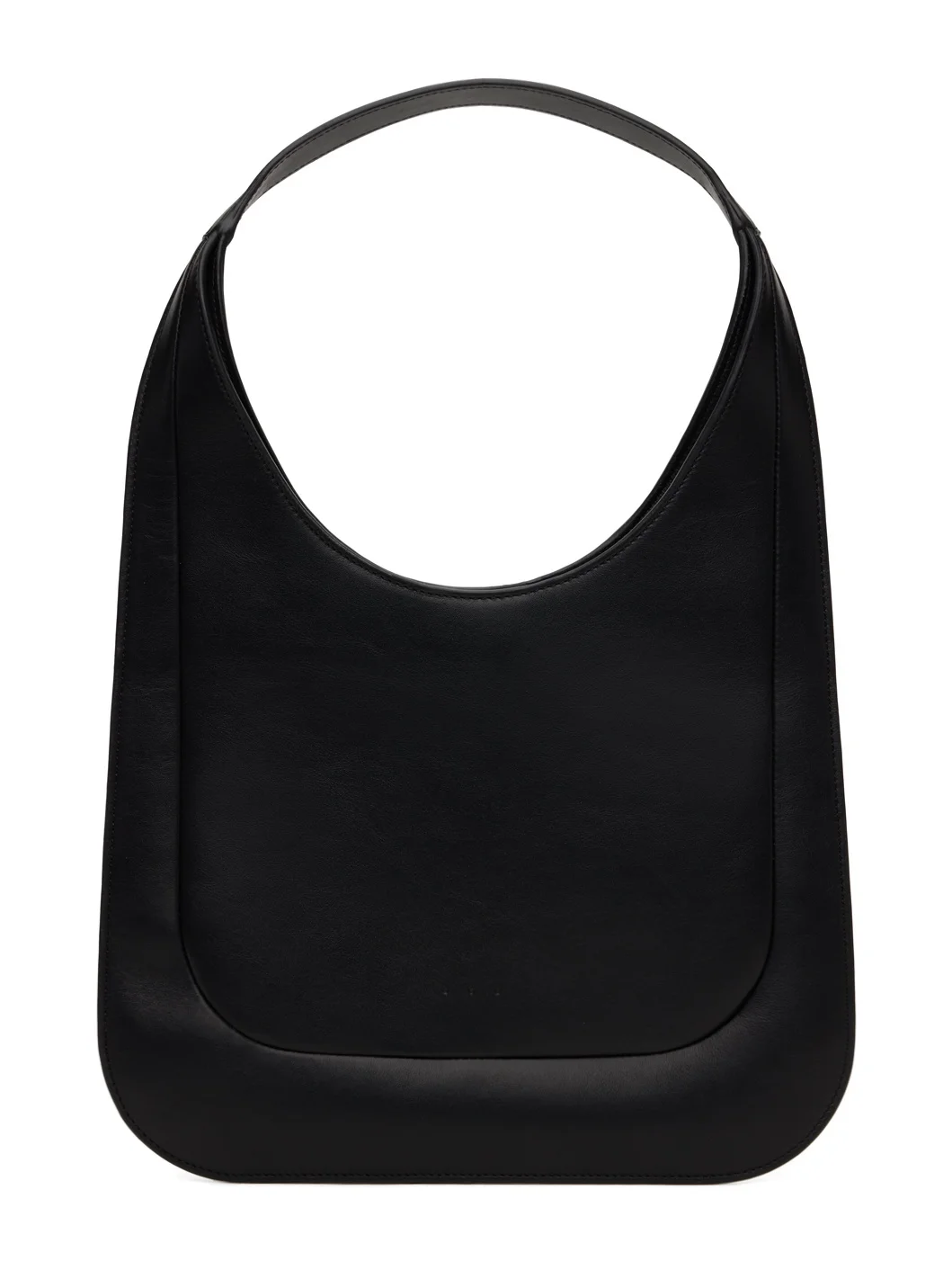 Buffed calfskin shoulder bag in black. · Integrated shoulder strap · Magnetic closure · Card slot at interior · Faille lining · H9.5" x W12" · Total height: 17.5" Supplier color: Black Body: 100% calfskin. Lining: 100% polyester. Made in Spain 242239F048035