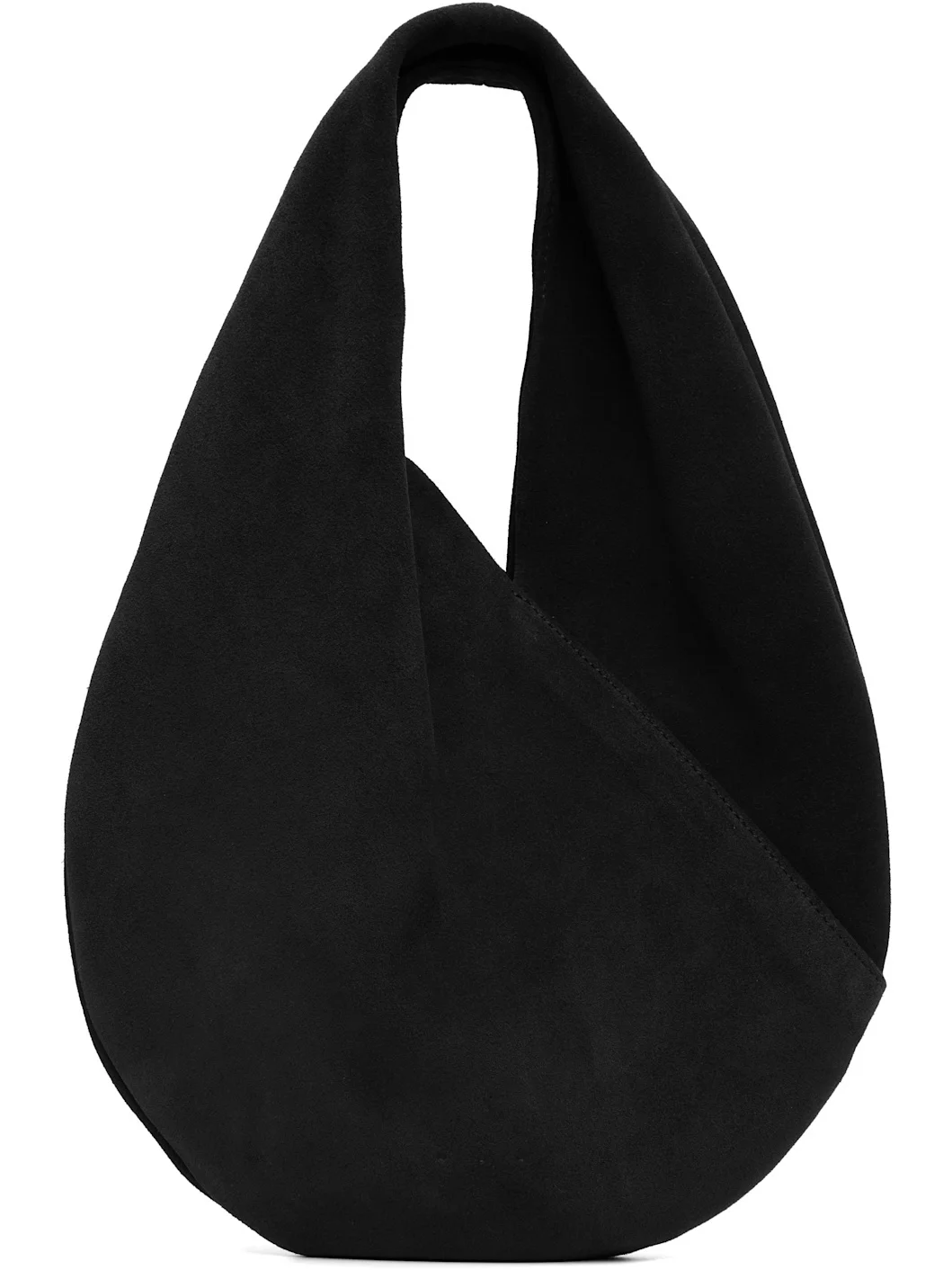 Calfskin suede shoulder bag. · Integrated shoulder strap · Logo embossed at face · Magnetic closure · Unlined · H9.5" x W10" · Total height: H13" Supplier color: Suede black Calfskin. Made in Spain 252239F048055
