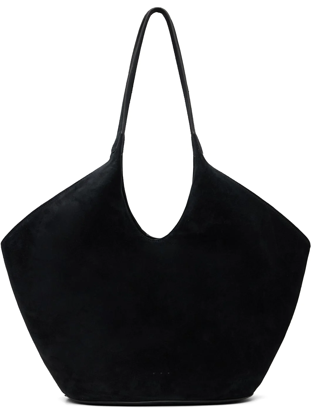 Calfskin suede tote. · Burnished edges throughout · Twin shoulder straps · Logo embossed at face · Magnetic closure · Patch pocket at interior · Grosgrain lining · H9.5" x W18" x D6.75" Supplier color: Suede Black Body: 100% calfskin. Lining: 100% polyester. Made in Spain 261239F049026