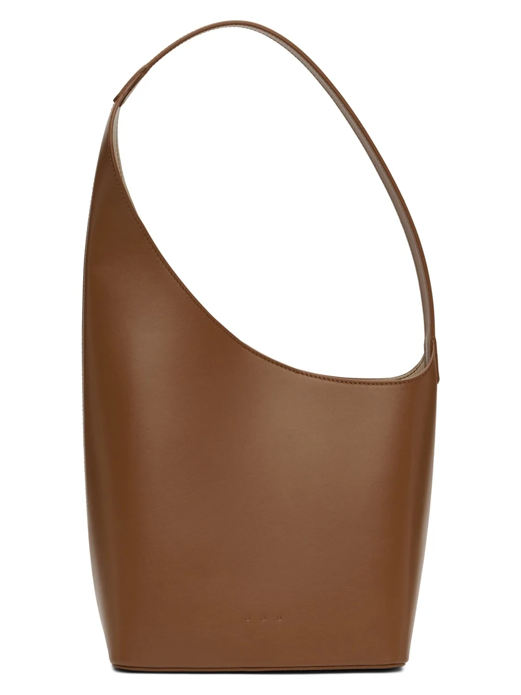 Buffed calfskin shoulder bag in brown. · Integrated shoulder strap · Logo embossed at face · Magnetic closure · Patch pocket at interior · Grained faux-leather lining · H12" x W10" x D4" · Total height: H17.5" Supplier color: Brown rust