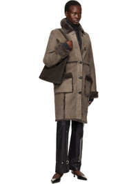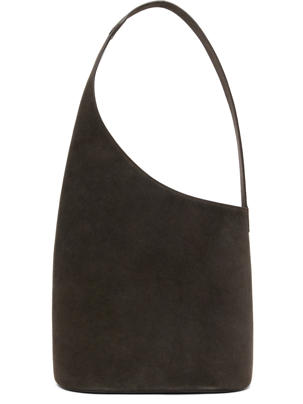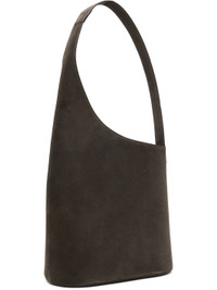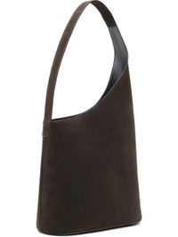 Calfskin suede tote in brown. · Fixed shoulder strap · Logo embossed at face · Magnetic closure · Patch pocket at interior · Buffed faux-leather lining · H10.5" x W11" x D5" · Total height: H20.5" Supplier color: Suede coffee Calfskin. Made in Spain 251239F048033