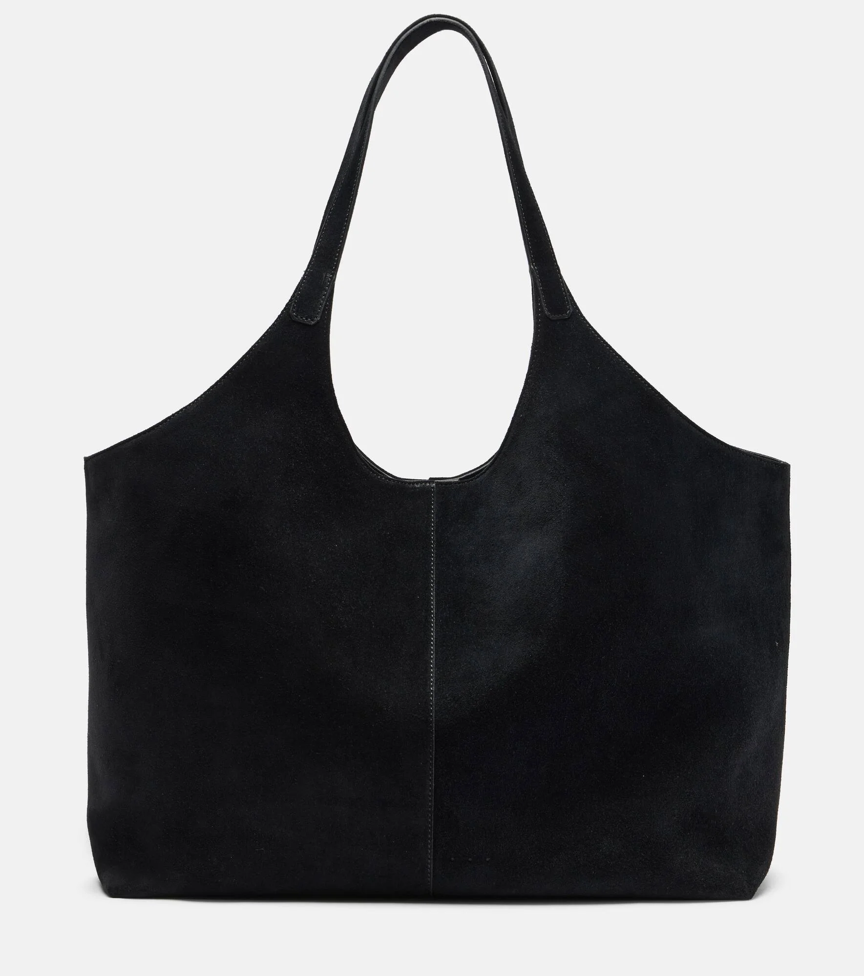 Sculptural silhouettes and the finest materials shape Aesther Ekme's vision of refined minimalism. The Cabas tote bag is crafted from soft suede and is designed for everyday use, thanks to its top handles and spacious interior. Product Details - Material: calf leather (suede) - Lining: fabric, suede - Made in Spain - Designer color name: 101 Suede Black - Item color: black - Top handles - Closure: magnetic-tab fastening - Internal details: single compartment, internal slot pocket - Includes: dust bag - Item number: P01039137 Size & Fit - Min. height 28cm-11" - Max. height 56cm-22" - Min. width 40cm-15.5" - Max. width 48cm-19" - Depth 16cm-6.5"