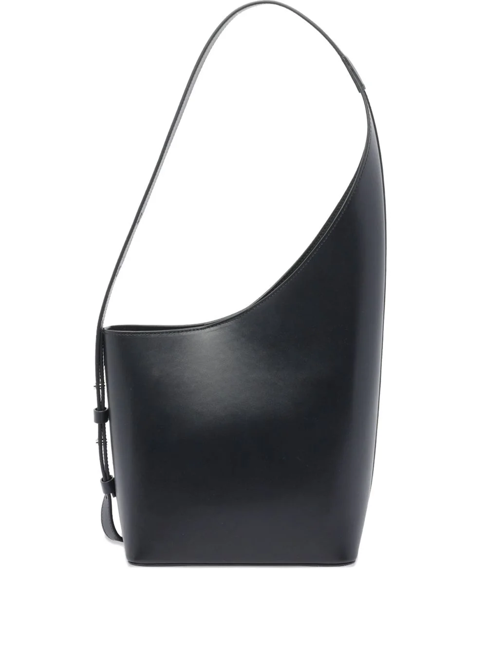 demi-lune leather shoulder bag Highlights - Black - Calf leather - Magnetic closure - Adaptable strap - Curved shape Imported Composition Outer: Calf Leather 100% SIZE & FIT Measurement DEPTH 4.72 in(12 cm) HEIGHT 9.05 in(23 cm) WIDTH 8.66 in(22 cm)