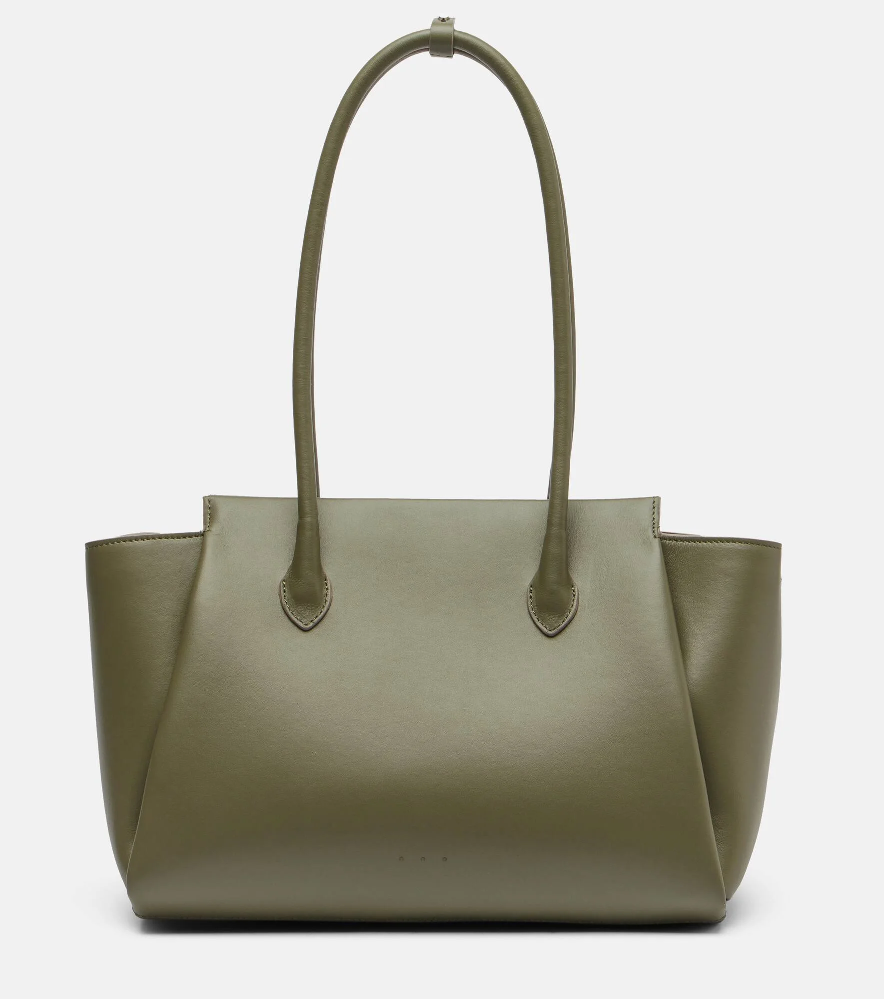 Crafted from supple leather, the Ekme tote bag from Aesther Ekme offers an elegant everyday companion with a minimalist silhouette and a structured design. This accessory features easy-to-carry top handles and a compact yet functional interior. Product Details - Material: calf leather - Lining: fabric - Made in Spain - Designer color name: 239 Sage - Item color: green - Top handles - Closure: magnetic-tab fastening - Internal details: single compartment, internal slot pocket - Includes: dust bag - Item number: P01039140 Size & Fit - Height 22cm-8.5" - Width 35cm-14" - Depth 14cm-5.5" - Length of handles 64cm-25"
