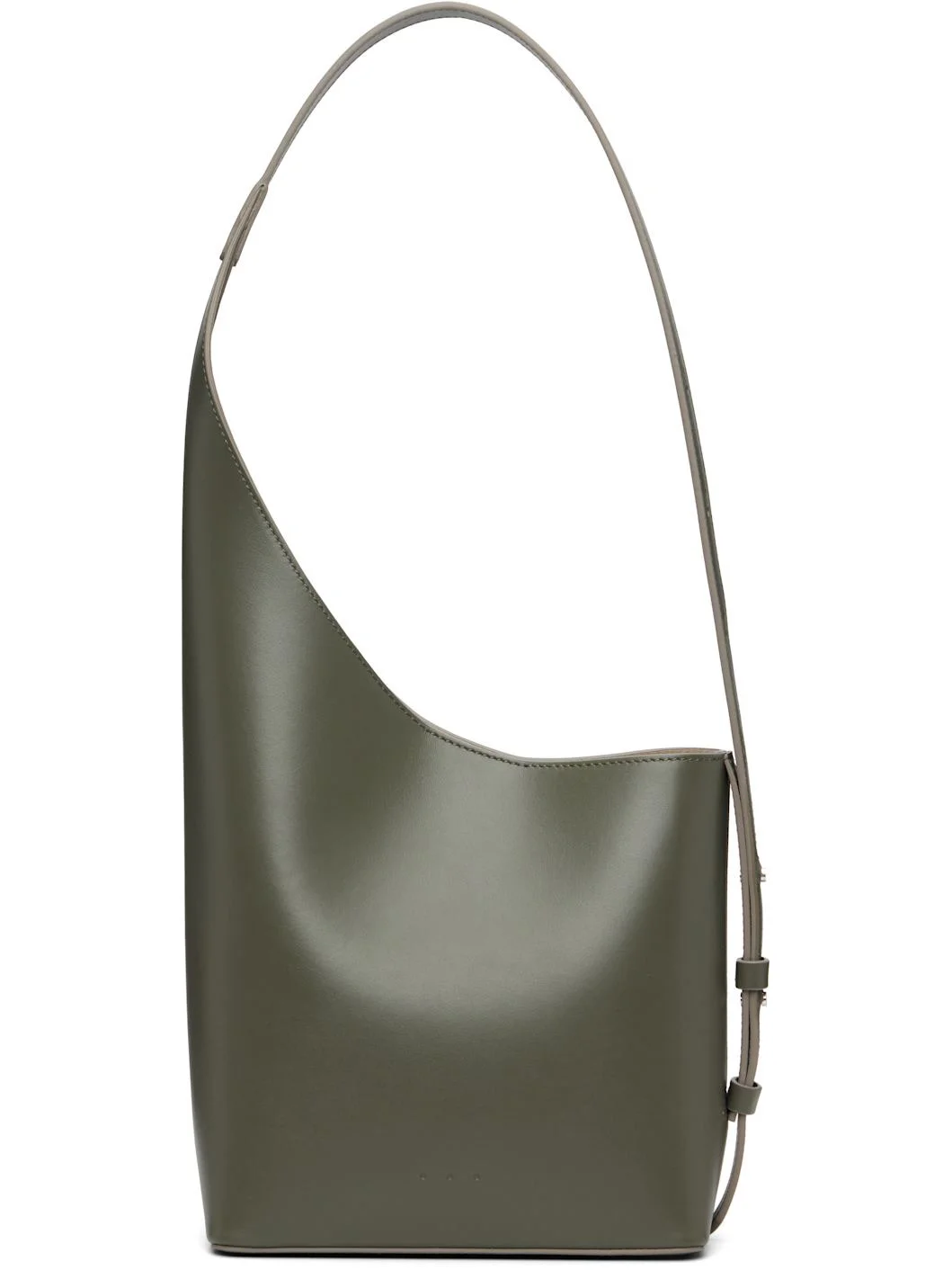 Buffed calfskin shoulder bag. · Adjustable and semi-detachable shoulder strap · Logo embossed at face · Magnetic closure · Microfiber interior · H7.75" x W8.75" x D4.5" · Total height: H18" Supplier color: Sage Calfskin. Made in Spain 252239F048042