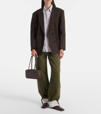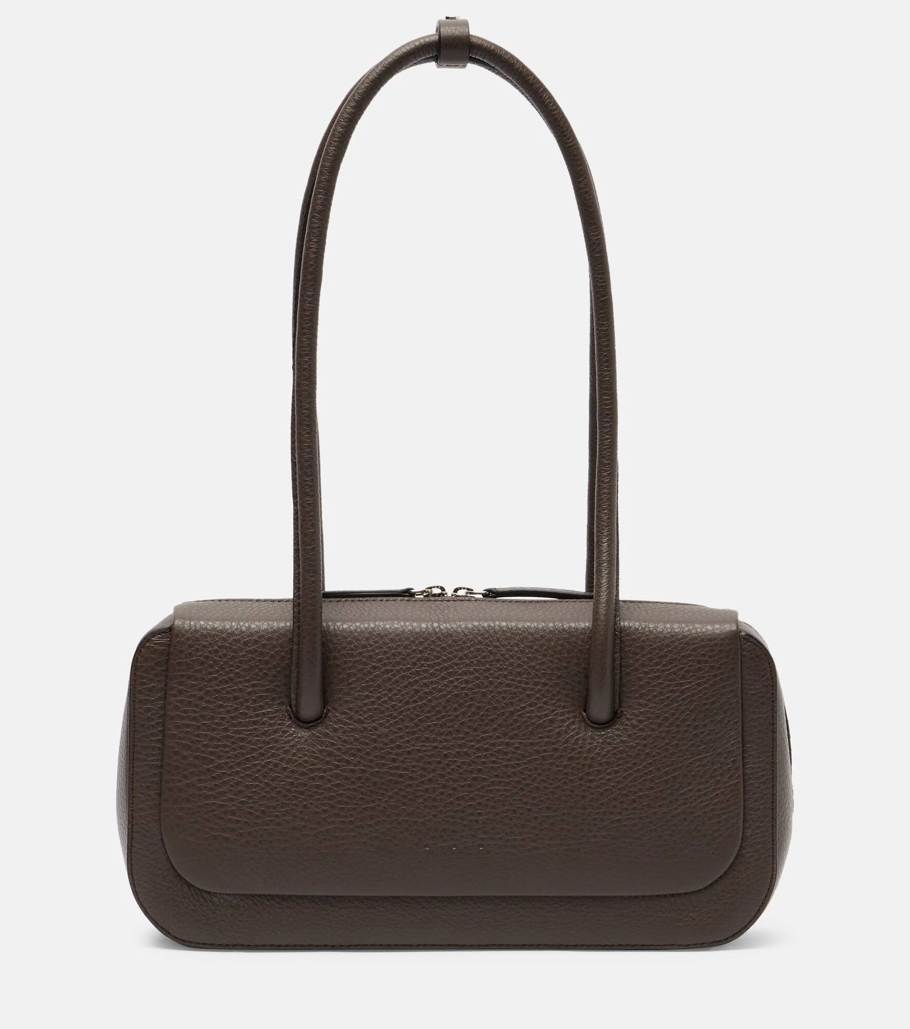Sculptural silhouettes and the finest materials shape Aesther Ekme's vision of refined minimalism. Crafted from supple leather, the Lagune Bowling shoulder bag features an inner pocket and elongated top handles. Product Details - Material: calf leather - Lining: fabric - Made in Spain - Designer color name: 221 Grain Chestnut - Item color: brown - Top handles - Closure: two-way zipped top - Internal details: card slot, single compartment - Includes: dust bag - Item number: P01039125 Size & Fit - Height 13cm-5" - Width 26cm-10" - Depth 6.4cm-2.5" - Length of handles 45cm-17.5"