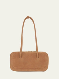 Aesther Ekme "Lagune" bowling shoulder bag in calfskin suede Rolled top handles with connector strap Two-way zip top closure Lining: Polyester Approx. 4.9"H x 10.2"W x 2.4"D Item Weight (Lbs.): 0.9 Made in Spain Online Inquiries: BGS21_V6LLK| Store Inquiries: #5045192