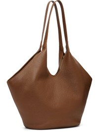Grained calfskin tote. · Burnished edges throughout · Twin shoulder straps · Logo embossed at face · Magnetic closure · Patch pocket at interior · Grosgrain lining · H9.5" x W18" x D6.75" Supplier color: Grain brownie Body: 100% calfskin. Lining: 100% polyester. Made in Spain 261239F049024